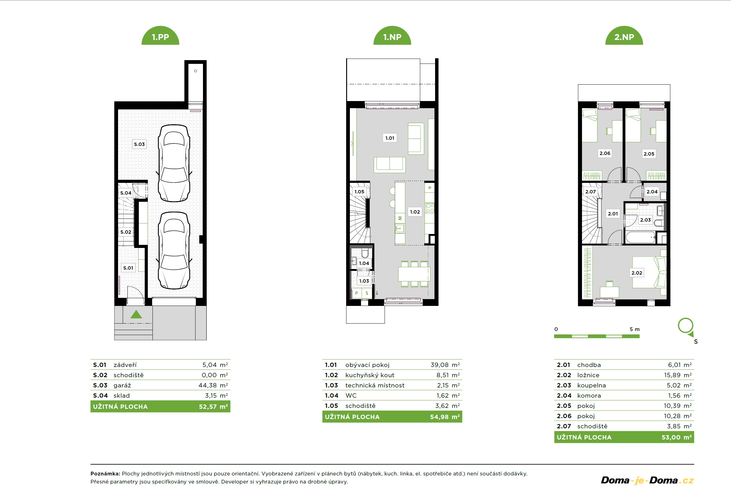 Dům celkem 160,6 m2 | Dvougaráž 44,4 m2