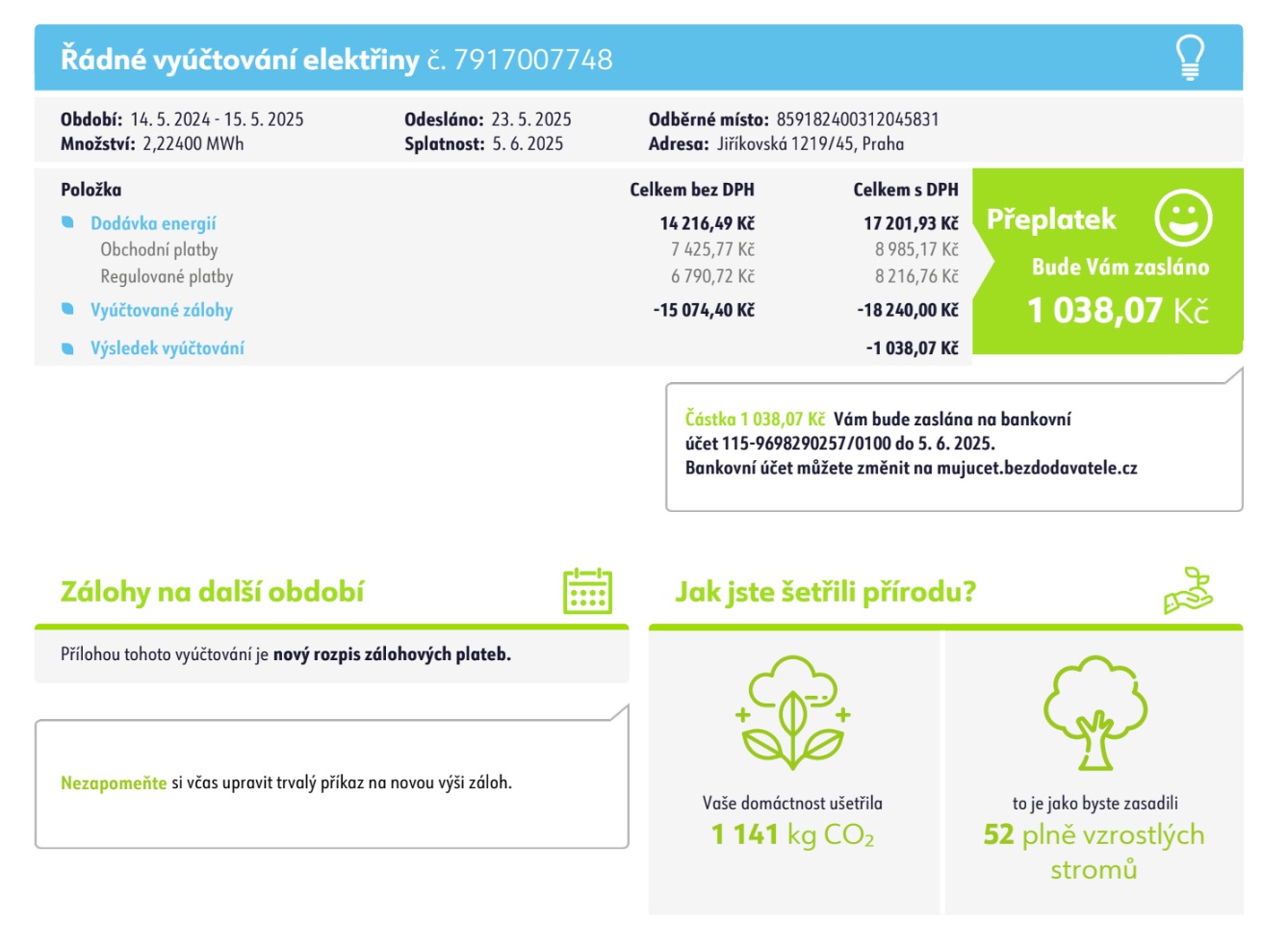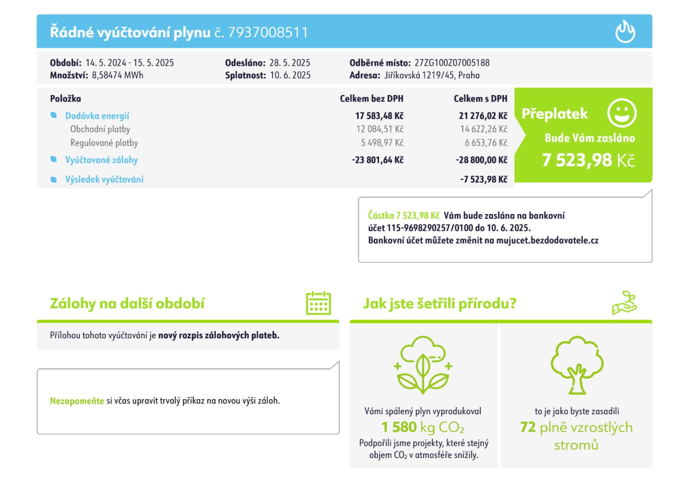 Plyn 8,6 MWh | Elektřina 2,2 MWh