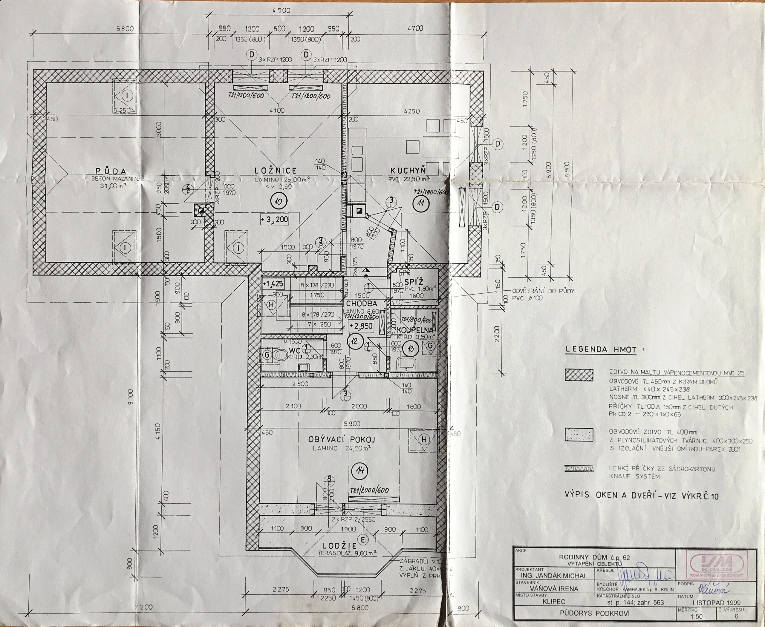 Tyto půdorysy přesně neodpovídají skutečnému stavu, došlo k drobným úpravám dispozice. V horním podlaží není původně plánovaná kuchyně a přístup do ložnic je řešen dlouhou chodbou.