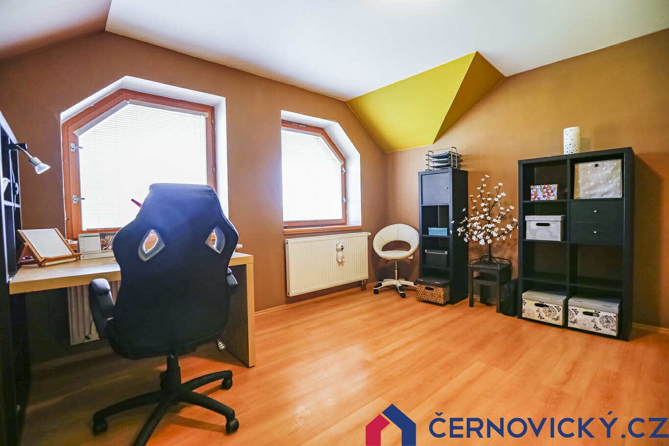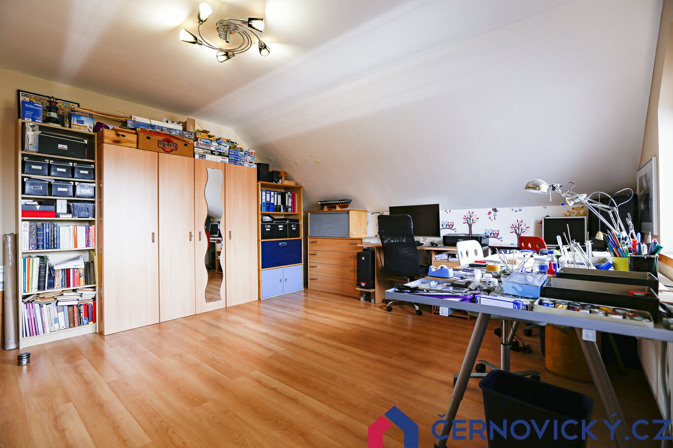 Šatny platí i pro zbylé dvě ložnice, každá má svou. Ta první nyní funguje jako království modelů, druhá jako pracovna.