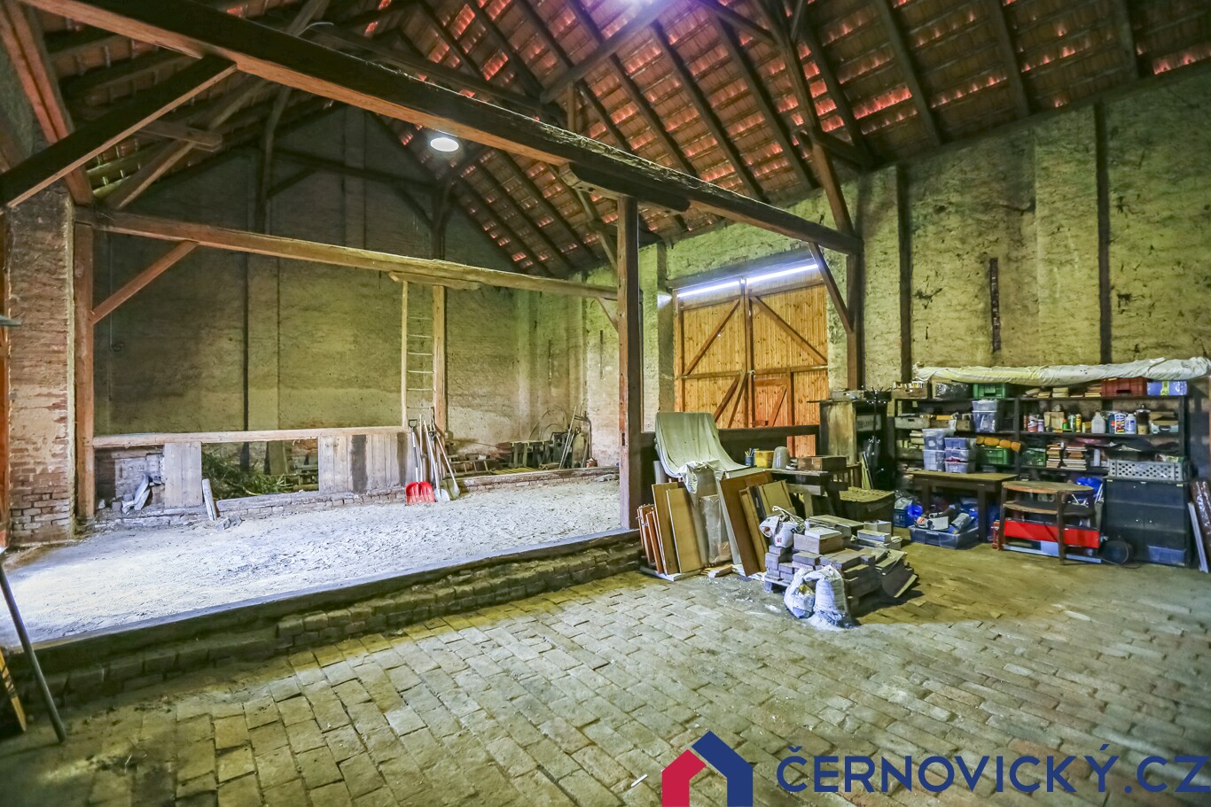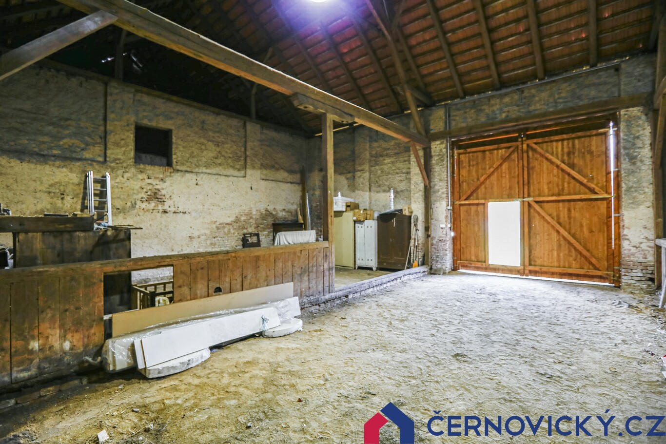 Hlavní část stodoly nabízí plochu přes 160 m2. Výška je 9.7 metru. Sem se vejde opravdu úplně všechno. Co tu mít třeba soukromé kino? Sbírku aut nebo motorek? Nebo ateliér? Pokračovat můžu donekonečna, protože přesně tolik možností tento objekt nabízí.