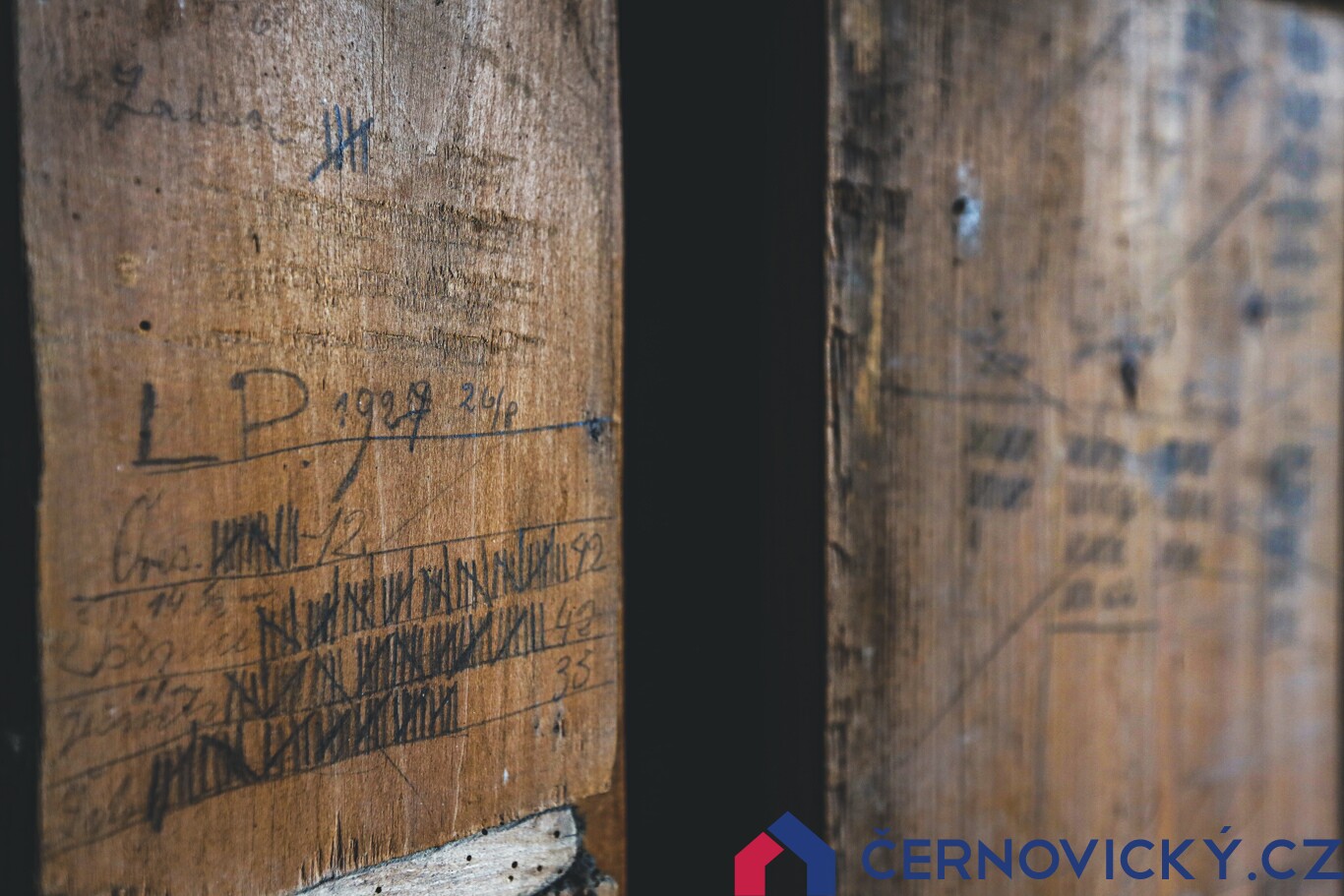 Stodola tu stojí přinejmenším 100 let. Milovníka starých staveb nadchne její zachovalost. Při vstupu jsou původní dveře, na kterých jsou zápisy z 20. let o stavu zásob obilí. Už jen proto jsem se do téhle stavby zamiloval, tohle vážně jen tak někde neuvidíte. Tato část stodoly má navíc k dispozici i druhé podlaží, výška do hřebene střechy je úctyhodných 6.5 metru. Stodola není vlhká, ani do ní nikudy neteče.