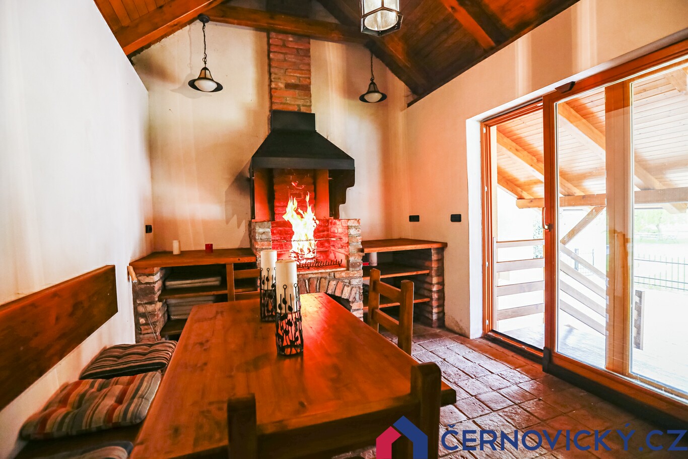 Pod domkem se navíc nachází starý klenutý sklep, který zajišťuje skvělé podmínky pro uchování piva. Ve stropě jsou provrtané prostupy pro trubky, pivo si tak můžete načepovat přímo u grilu. Tomu říkám absolutní luxus. Pro rozsáhlejší grilování je na terase k dispozici i venkovní pult a rožniště pro větší dobroty.