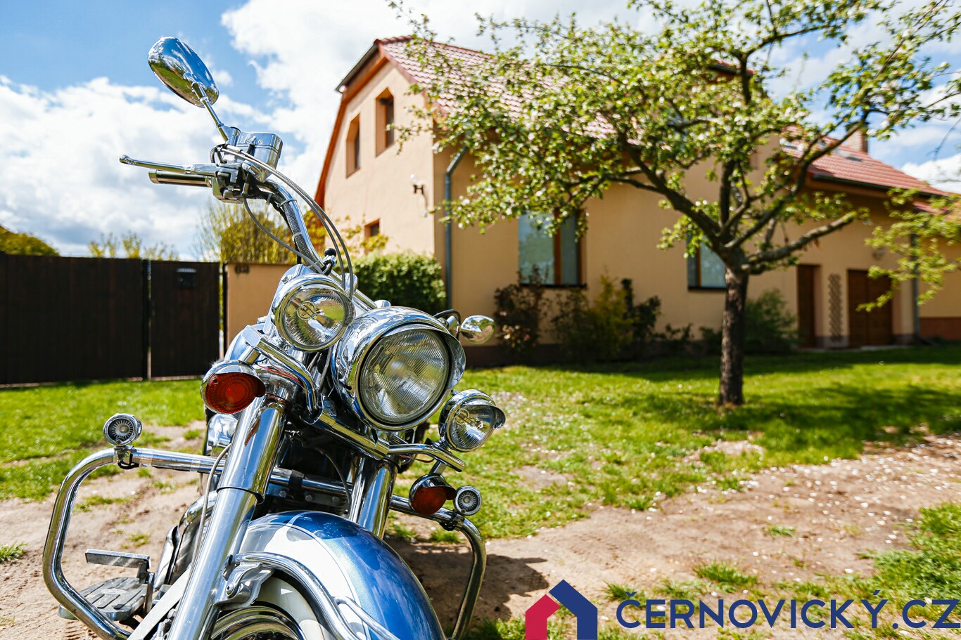Protože bylo hezky, motorku jsme vytáhli ven. Jinak má ale své suché místo v již zmíněné garáži, která je vidět na druhé fotce vpravo.