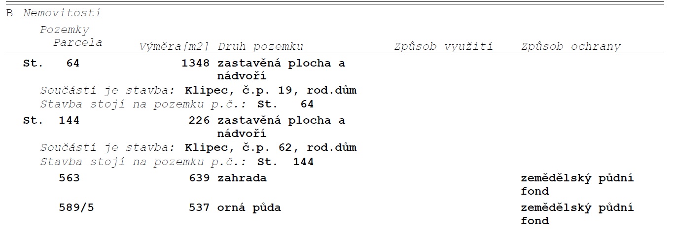 Předmět prodeje - výpis na listu vlastnictví