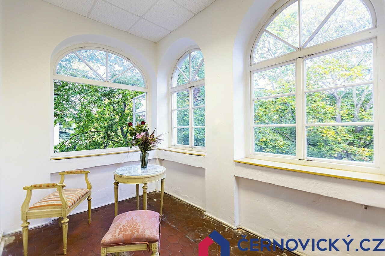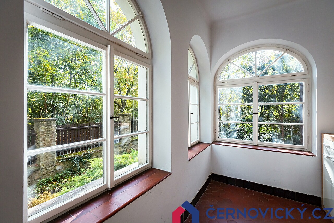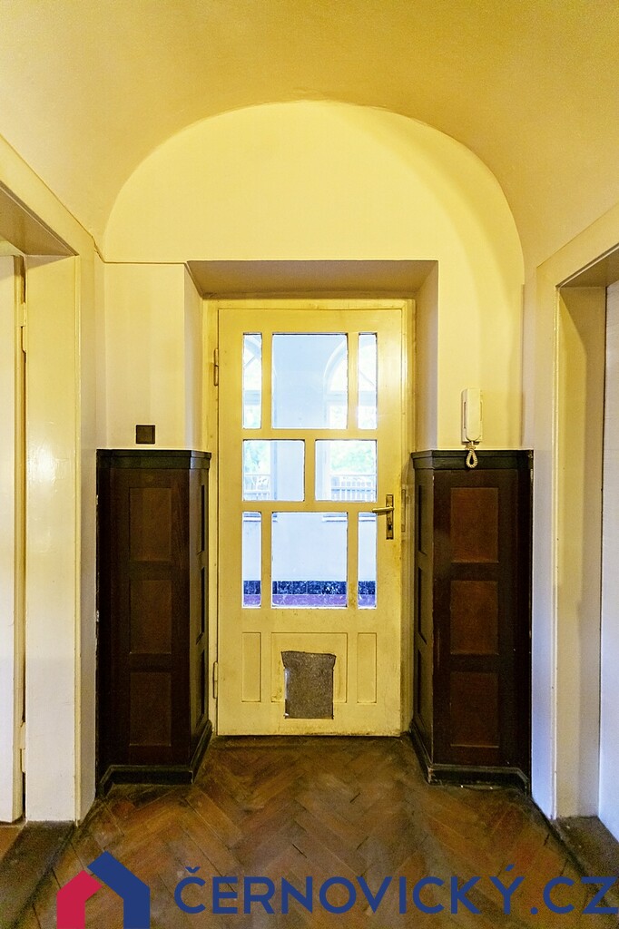 Při vstupu do domu se ocitnete v krásné, prosklené vstupní části s původními okny.