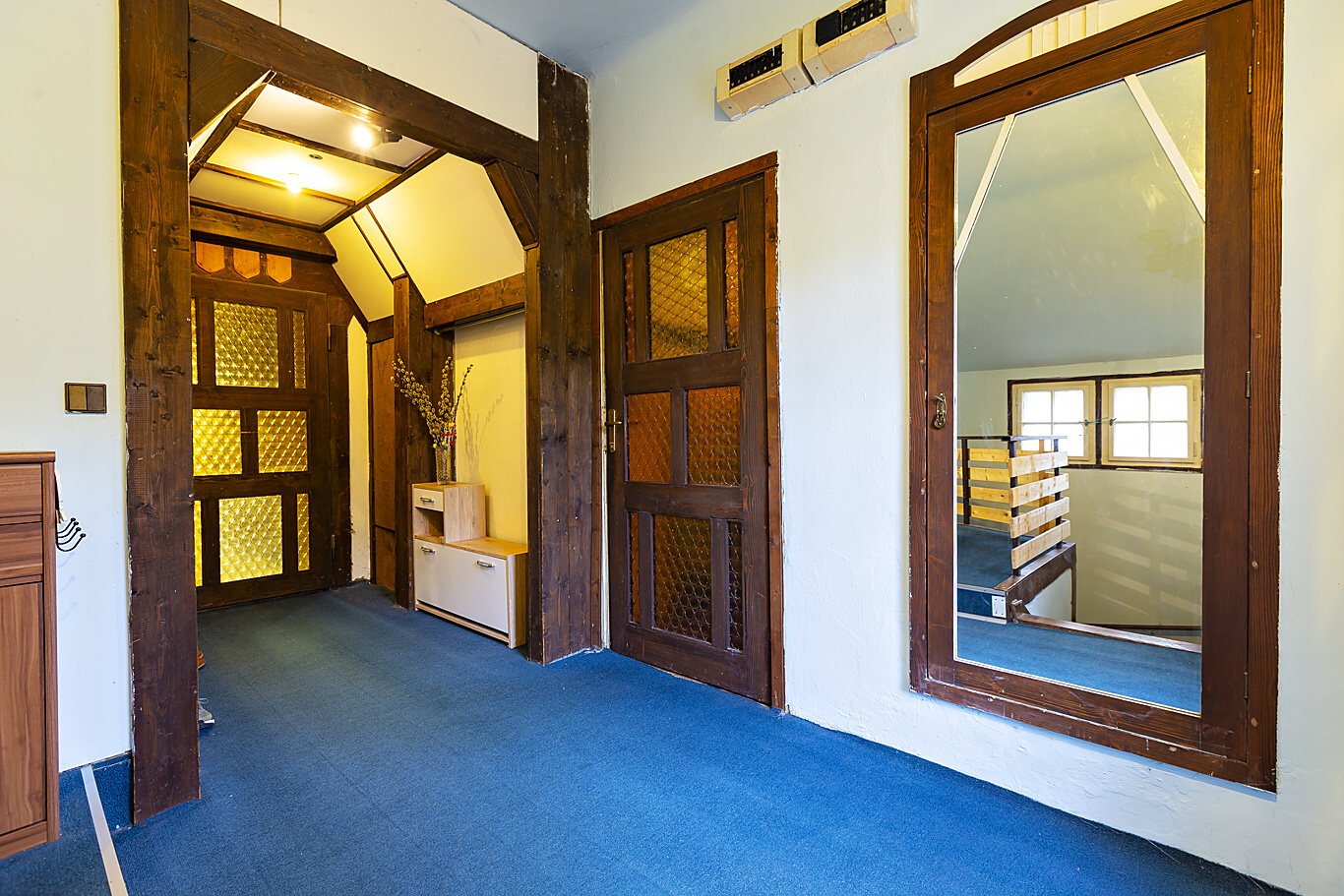 V drtivé většině domu se dochovaly původní parkety, tedy i ve vstupní hale. Ta má i jedno malé překvapení - skryté dveře, za kterými se nachází.. uvidíte až na prohlídce. Celá hala je po stěnách obložená dřevem.