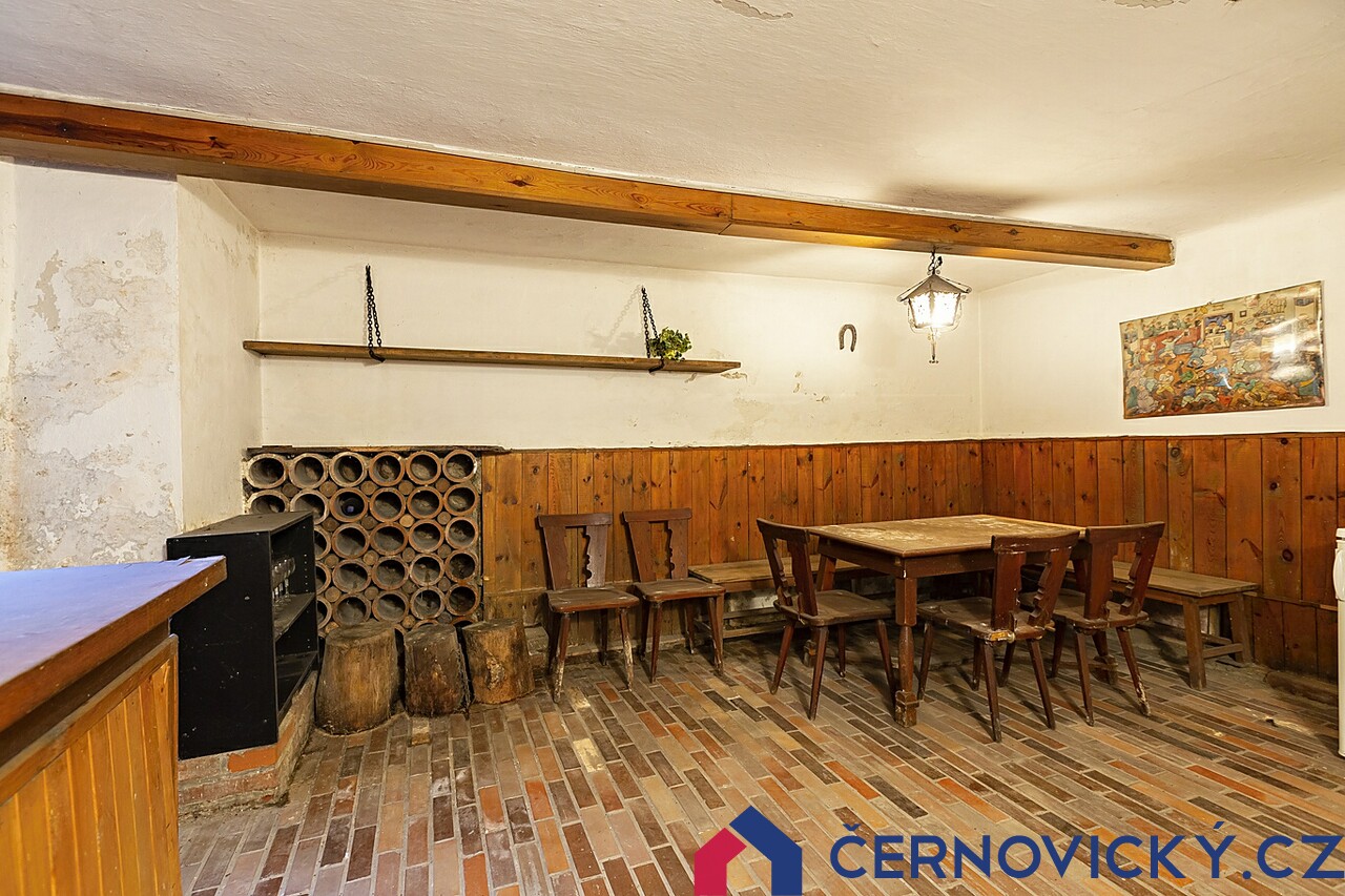 Před horkem se schováte i tady. Celý dům je totiž podsklepený, tato místnost fungovala jako společenská zašívárna. Při bujarých oslavách totiž nebylo rušeno osazenstvo ve vyšších podlažích domu. Nejen oslavy, ale i pikle se v tomto domě kuly. Protistranické schůze tu měly své bezpečné útočiště.