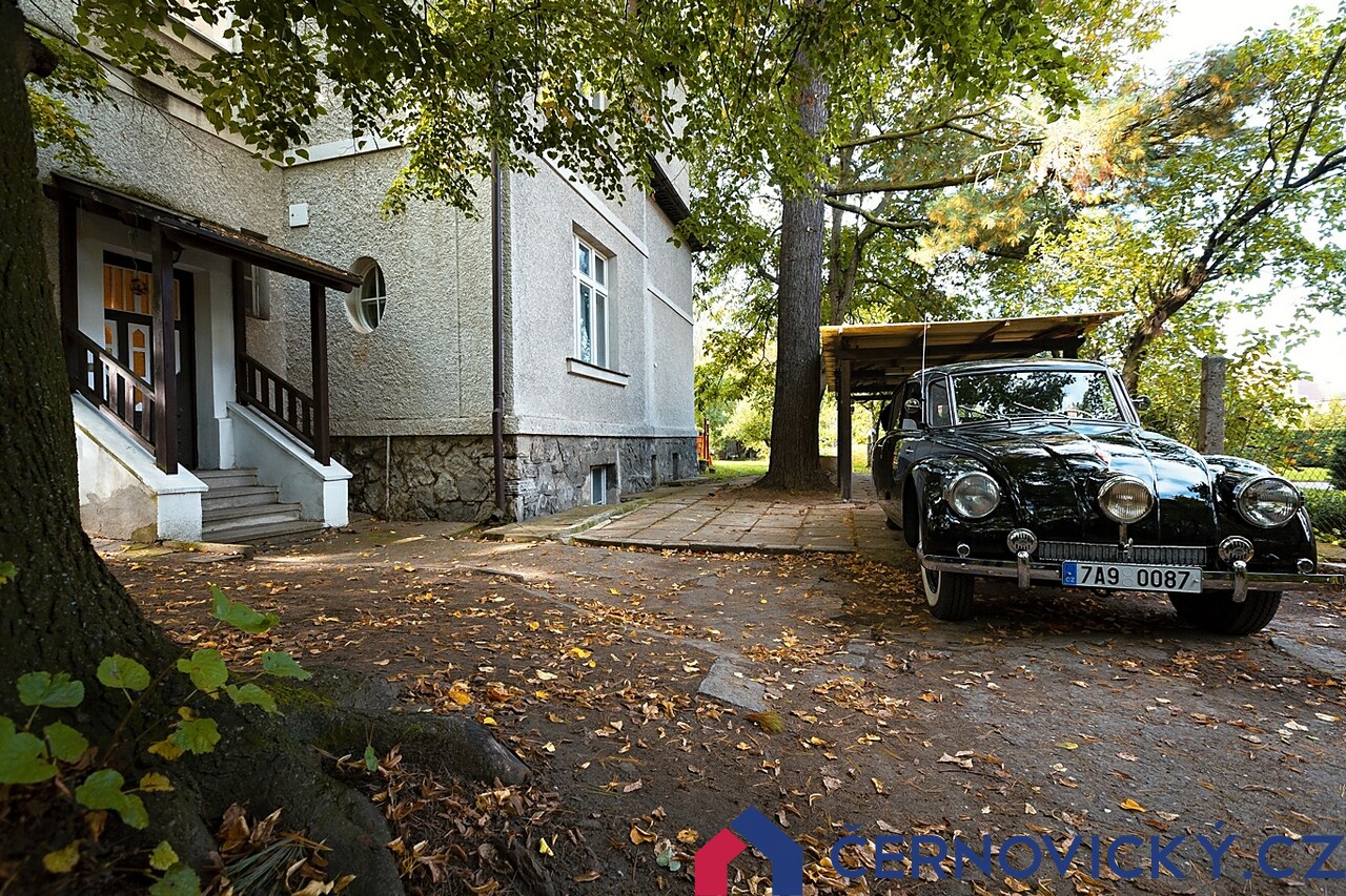 Vedle domu se v současnosti nachází krytá stání pro několik vozů. Ať už tady zaparkujete starou Tatrovku nebo nejnovější model Porsche, místa na auto je tu skutečně hromada.