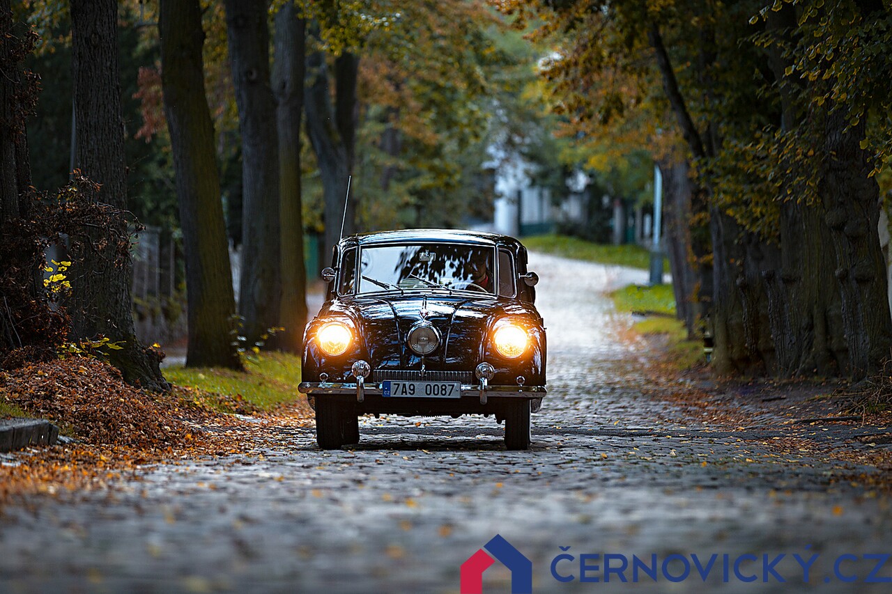 Zpátky do přítomnosti, i když ne tak docela. Stromová alej, staré dlažební kostky. Nešlo odolat a T87 jsme tu museli prohnat, abychom se posunuli v čase o 80 let zpátky. Alespoň na chvíli jsme chtěli vyzkoušet to, co mohly zažívat jen ty nejvýznamnější osoby dané éry.