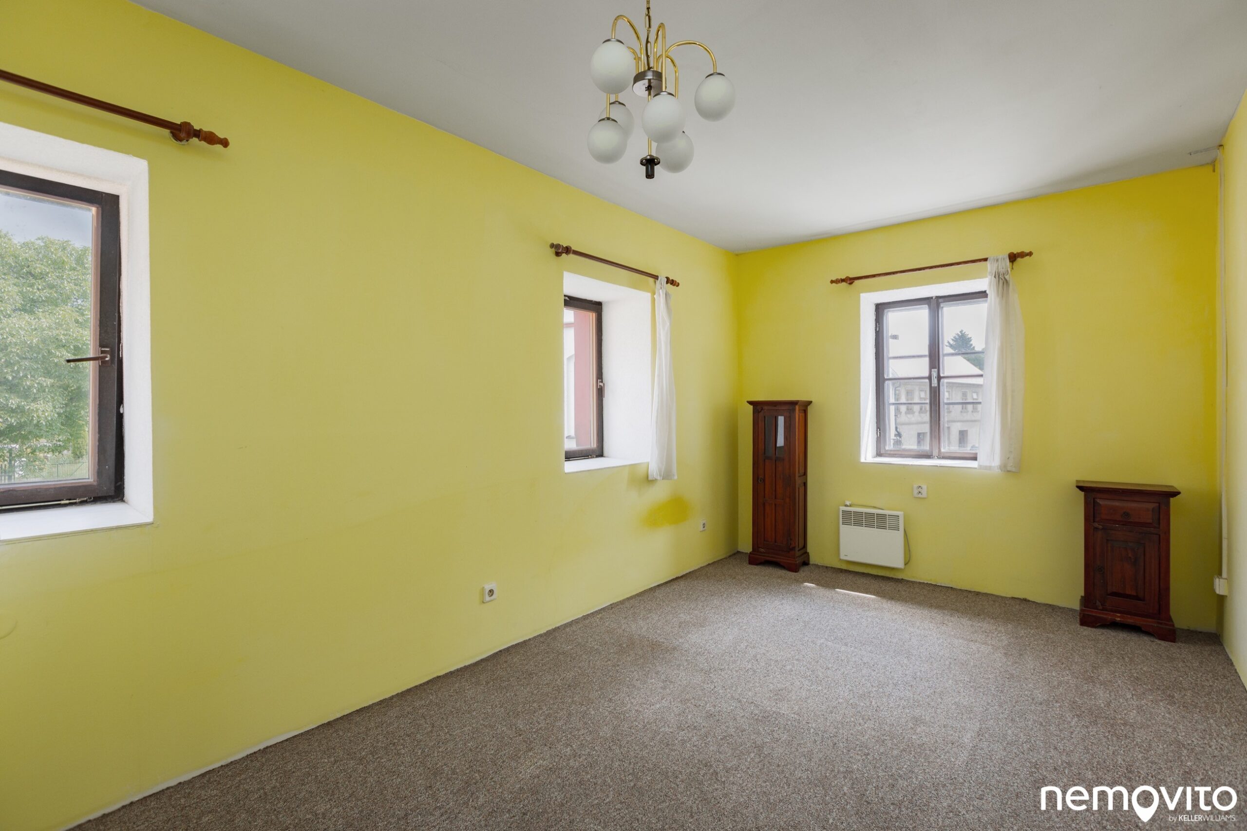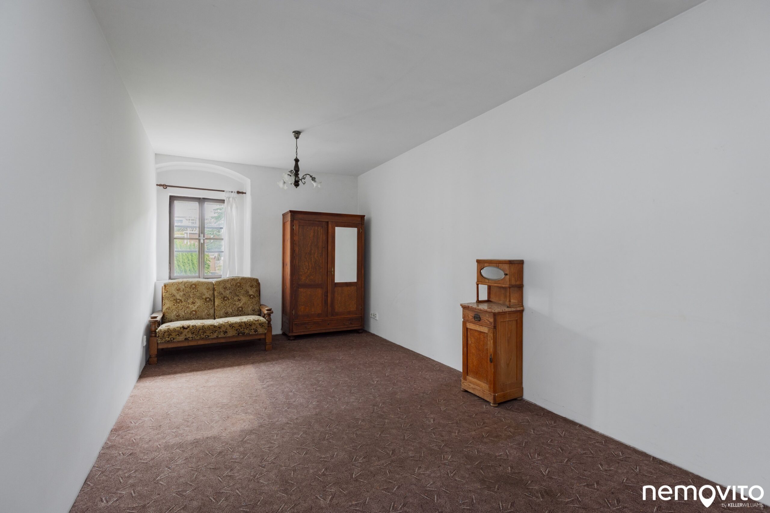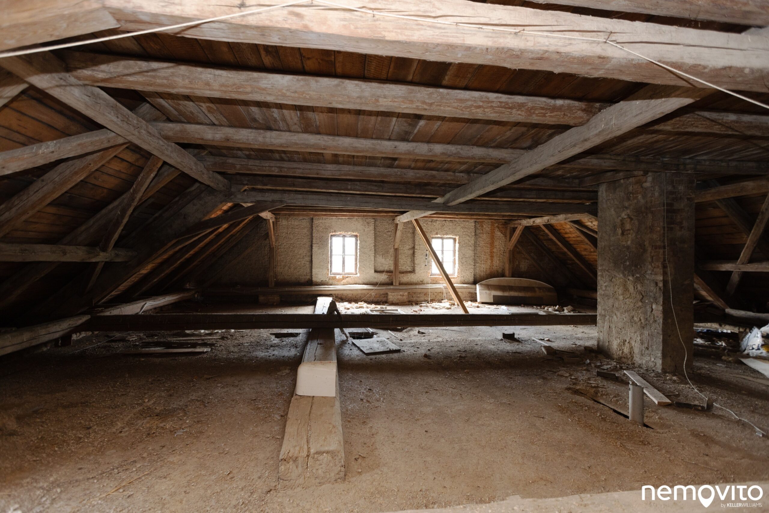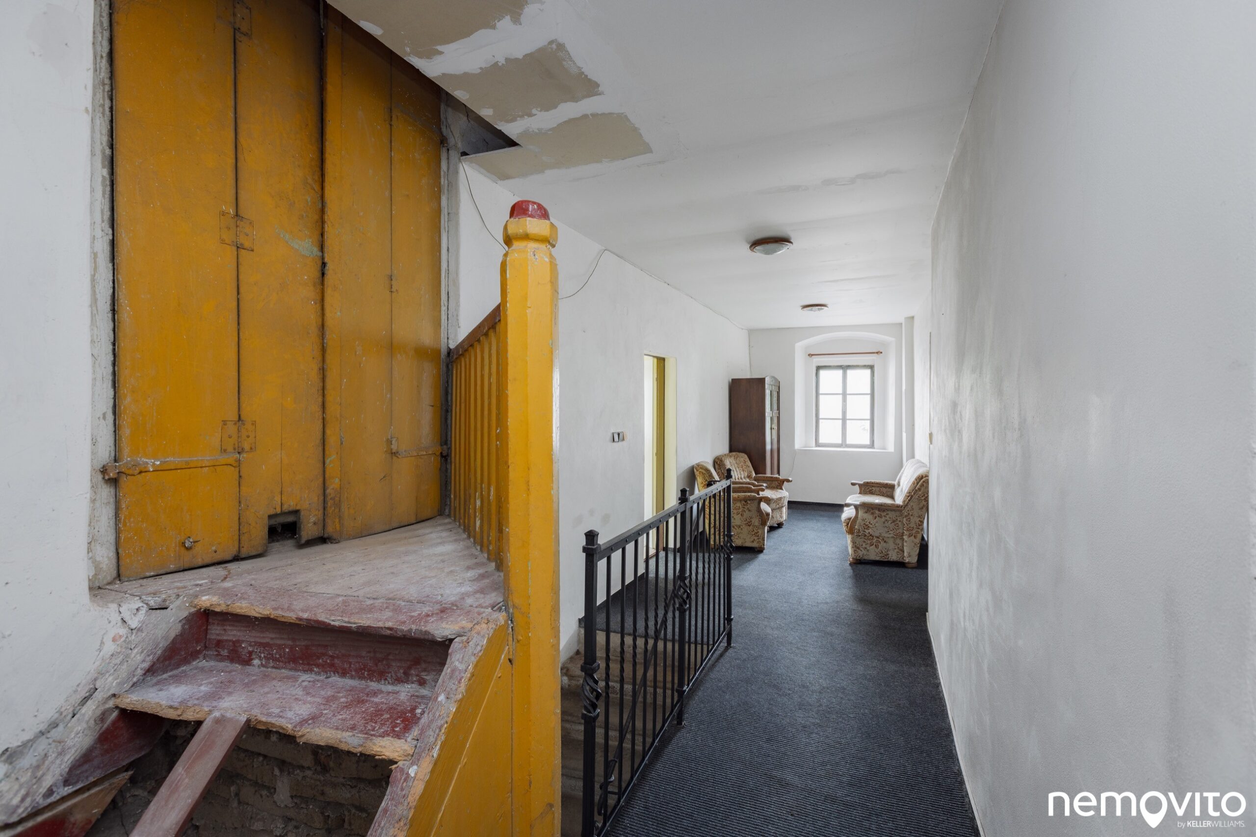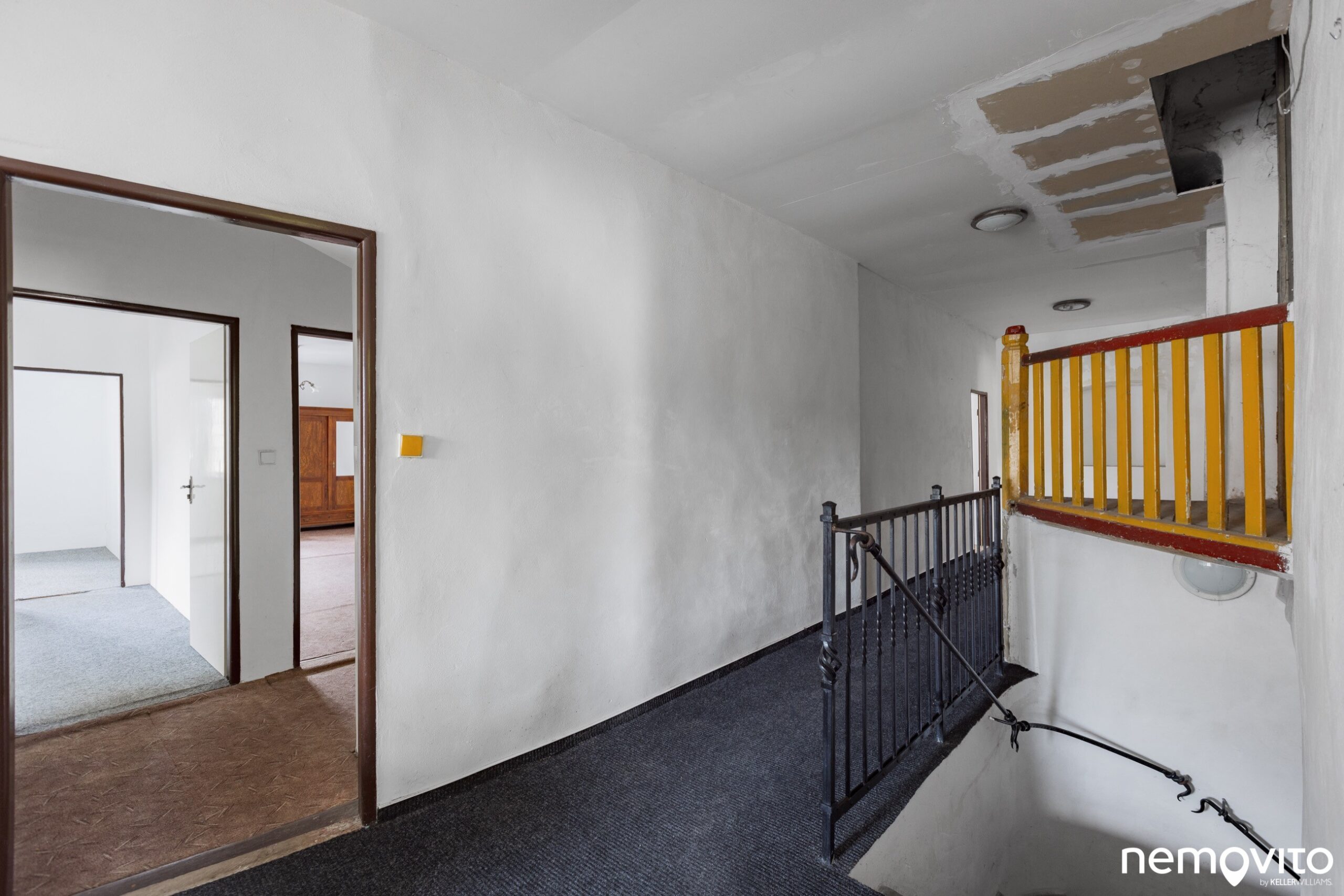 Klasicky vyhlížející dům se zdobenou fasádou a vysokou sedlovou střechou ukrývá hlavní potenciál právě pod ní. Půda je nyní nevyužitá a místa nabízí skutečně mnoho.