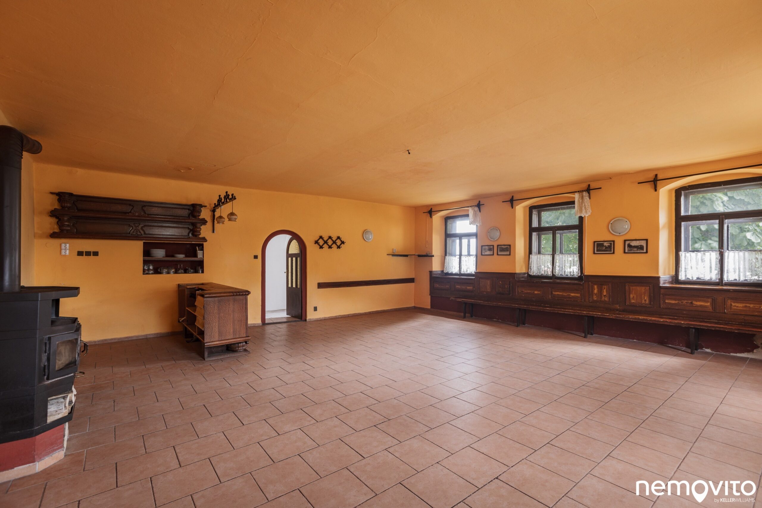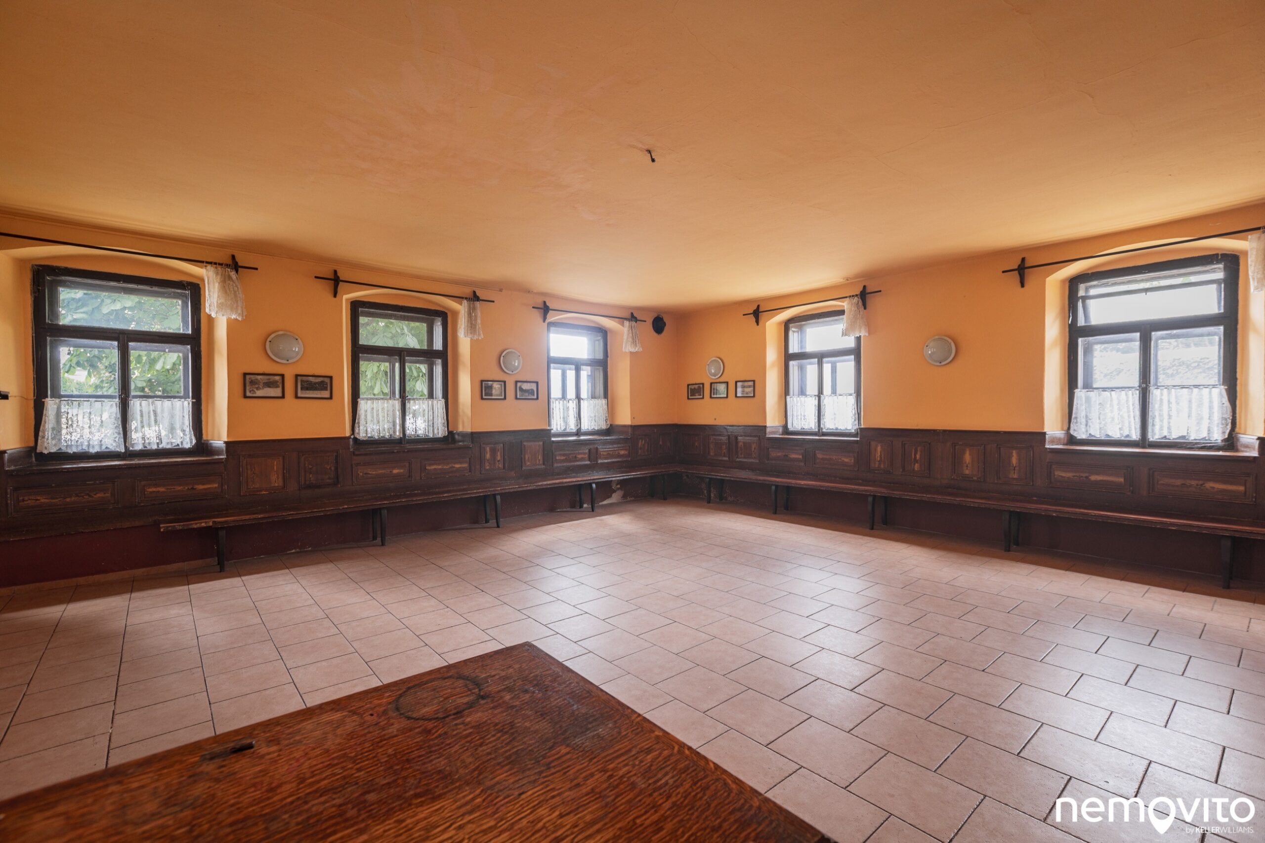 Dům se hrdě tyčí přímo na návsi, a to do úctyhodné výšky 13.5 metru. Na půdorysu o ploše 246 m2 nabízí dvě plnohodnotná podlaží a skutečně obrovskou půdu, která umožňuje vestavbu dalších místností. Těch vás v domě nyní čeká přesně 12. Pokud si tedy pohráváte s myšlenkou obnovení hostinského provozu, který by mimo restaurace doplnila i funkce penzionu, třeba právě tady naleznete skvělé zázemí pro vaše projekty. Dům během několika set let prošel rukama vlastníků mnohých profesí - od řezníků až po kamenického mistra. Jak ten se podepsal na podobě tohoto domu a proč je Levín často označován za místo tajemné? Odpovědi naleznete na tomto webu, který se věnuje nabídce historického domu, který obepínají překrásné scenérie okolní přírody a připomínky dávných časů.
