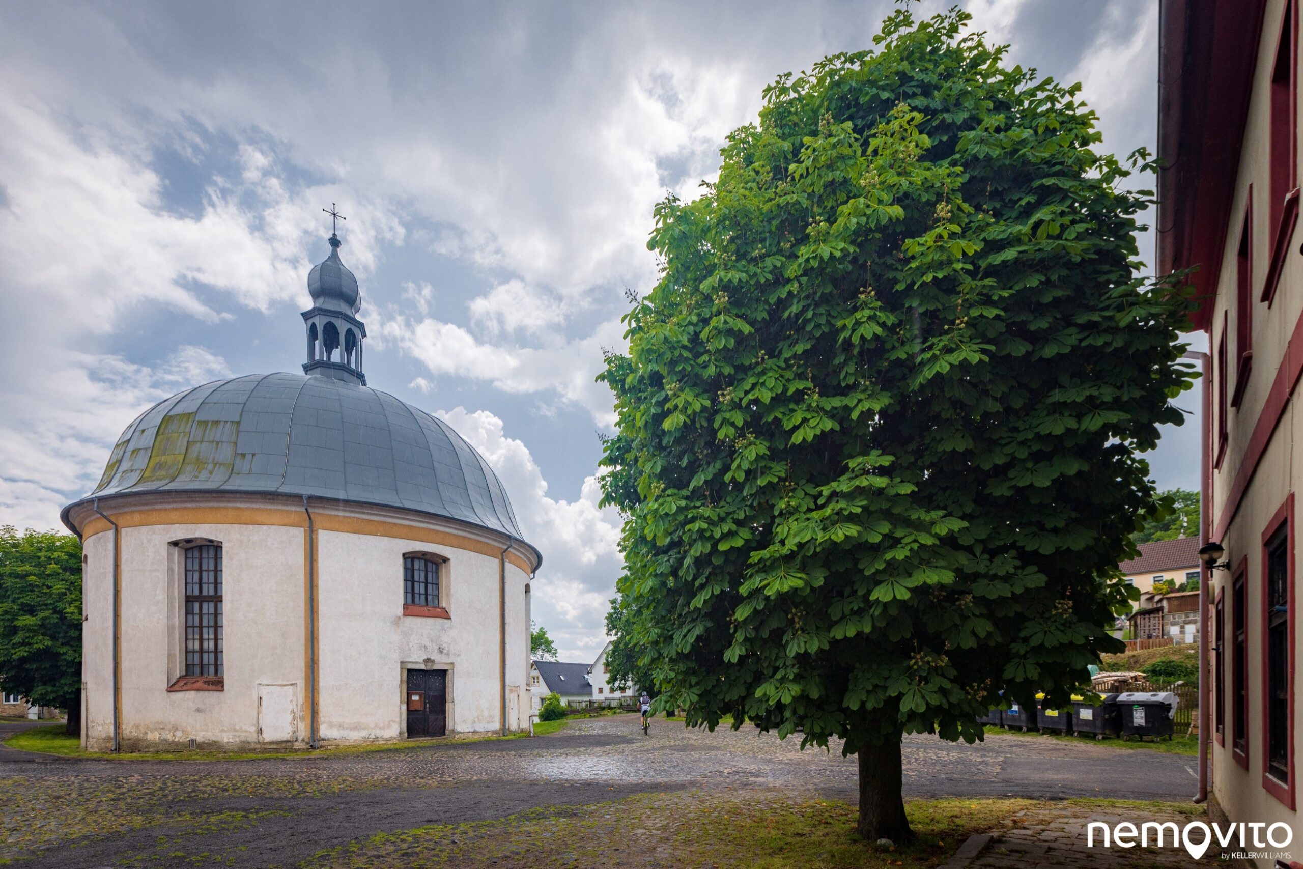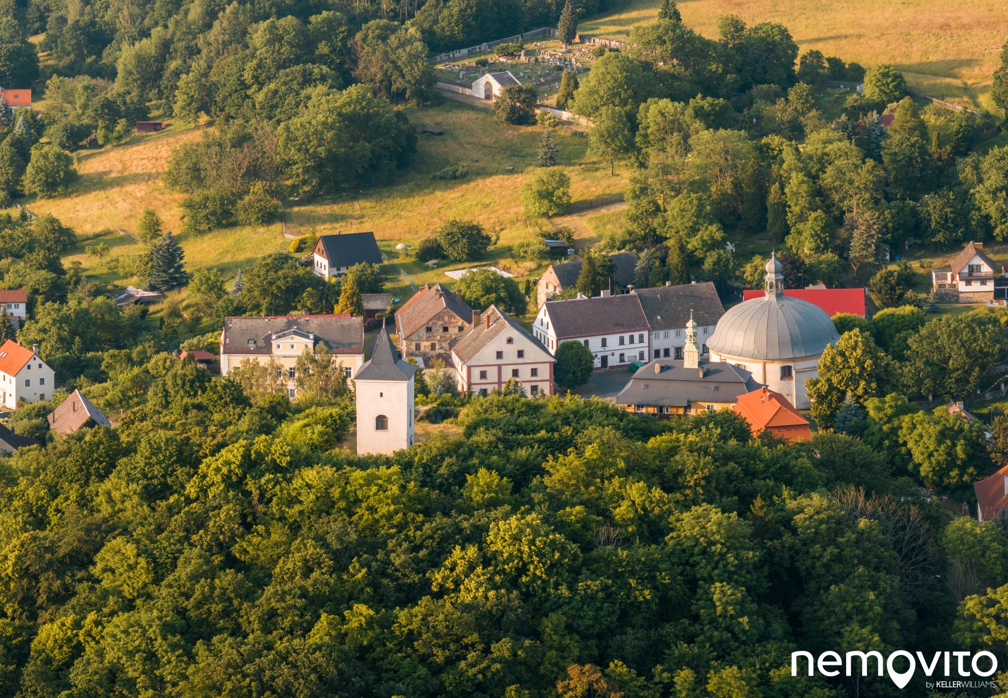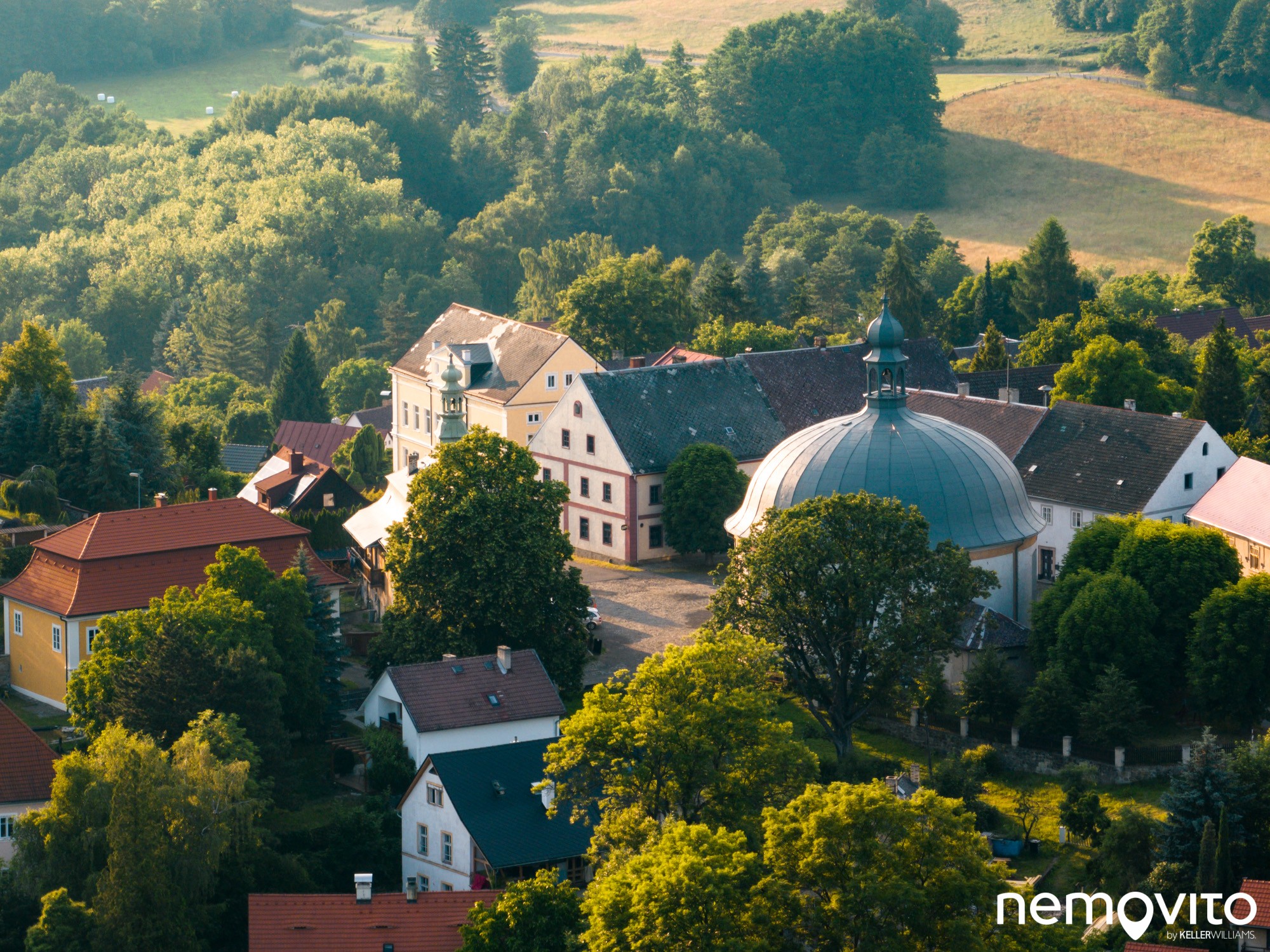 Dům se nachází přímo na návsi, naproti neobvyklému kostelu Povýšení sv. Kříže, který na první pohled zaujme svým kruhovým půdorysem. Za zmínku stojí, že je kostel zhruba o půl století mladší, než nabízená nemovitost.