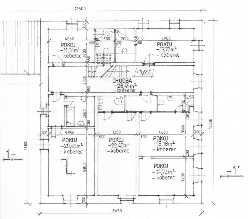 Prostory horního podlaží jsou vyklizené. Nejmenší pokoj je o velikosti 11 m2, ten největší nabídne 22 m2.