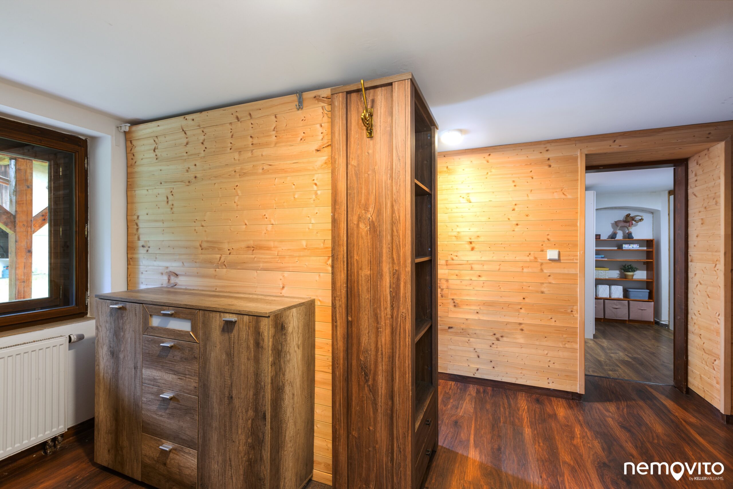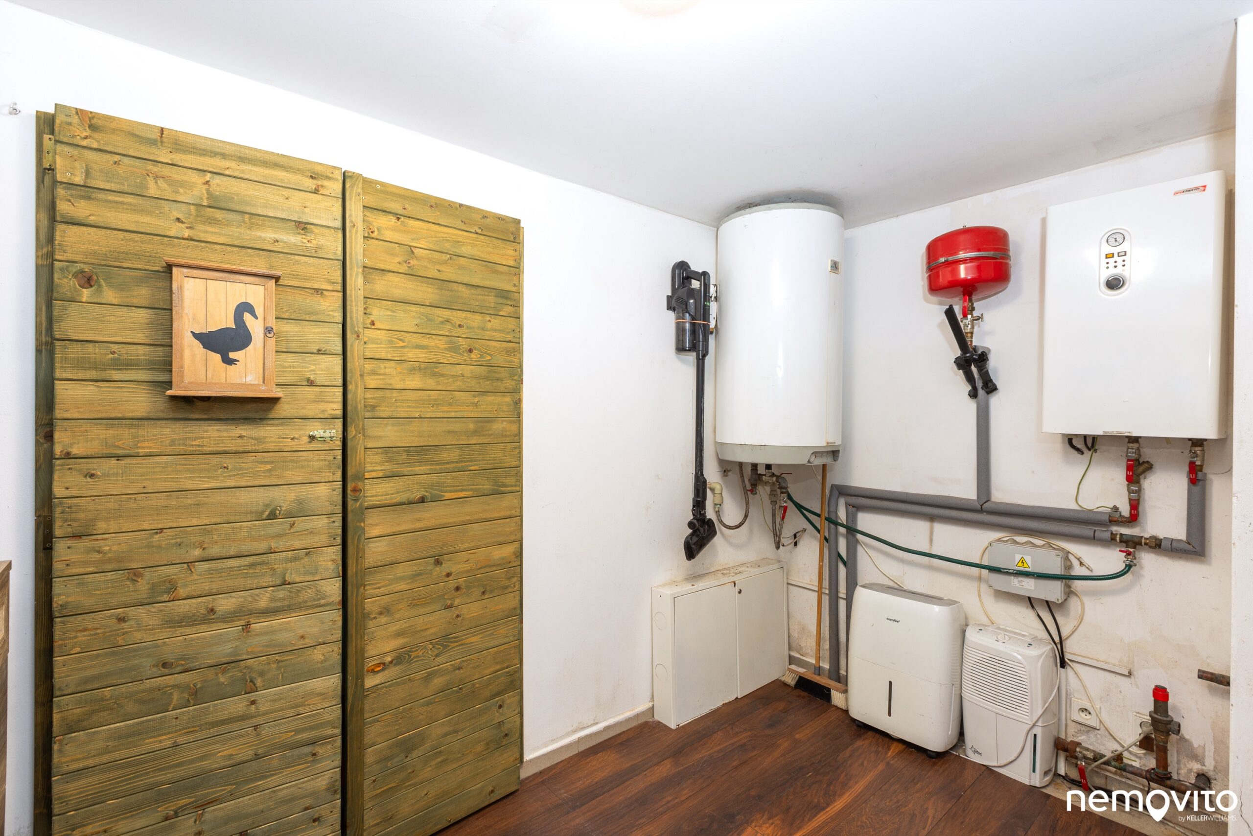 V obytné části jsme ale ještě vynechali technickou místnost, kde je zázemí pro prádelnu a také elektrokotel s bojlerem. Ruku na srdce - kotel by to chtělo nový a silnější. Kutilové nemusí svým ženám či mužům zabírat místo v krásné stodole s přístřeškem, své útočiště naleznou tady. Ještě jedna stodola je totiž napojena rovnou na dům.