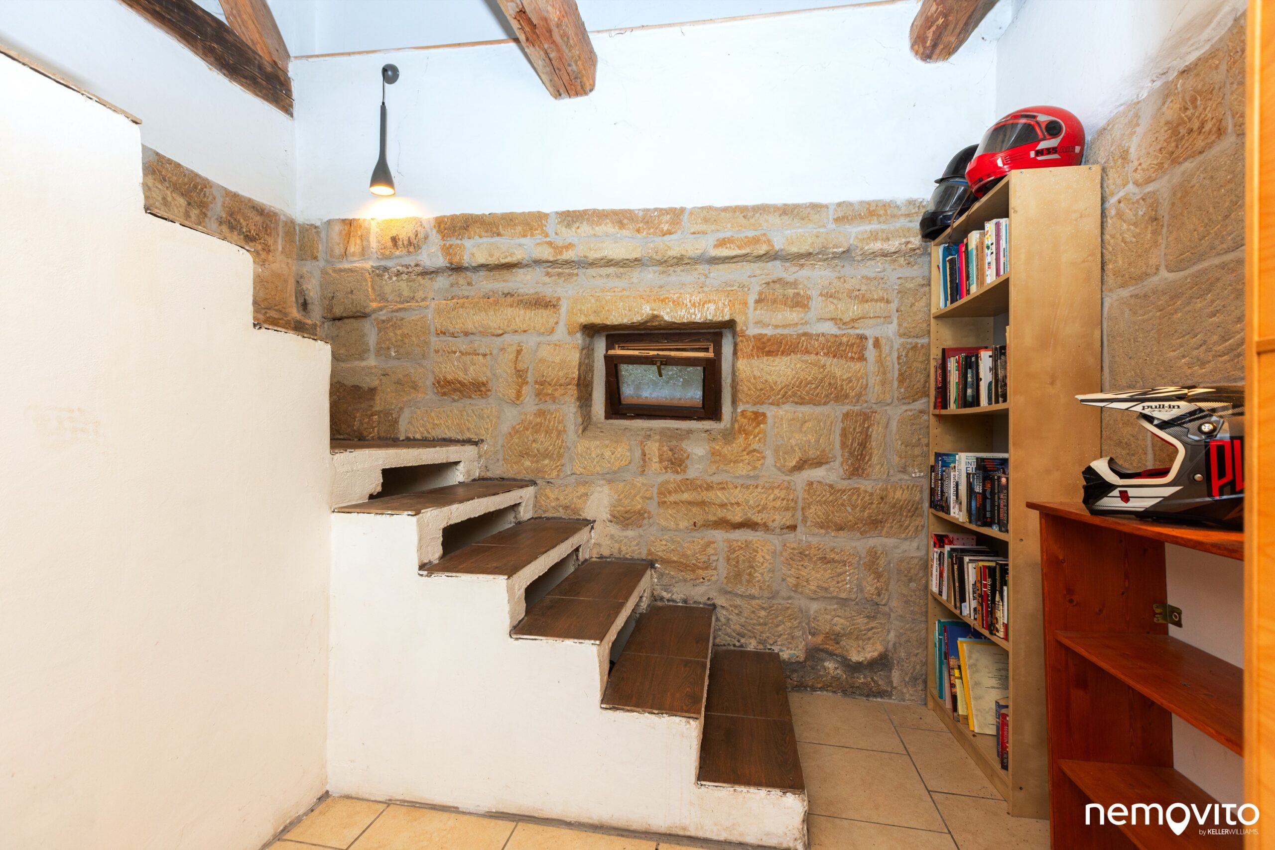 Na první fotce můžete vidět místnost pro fitko, později fungovala jako pracovna (13 m2). Odhalené pískovcové kvádry, klenby a trámy. Také navazující vstup do části s penzionem je opravdovým výletem do minulosti.