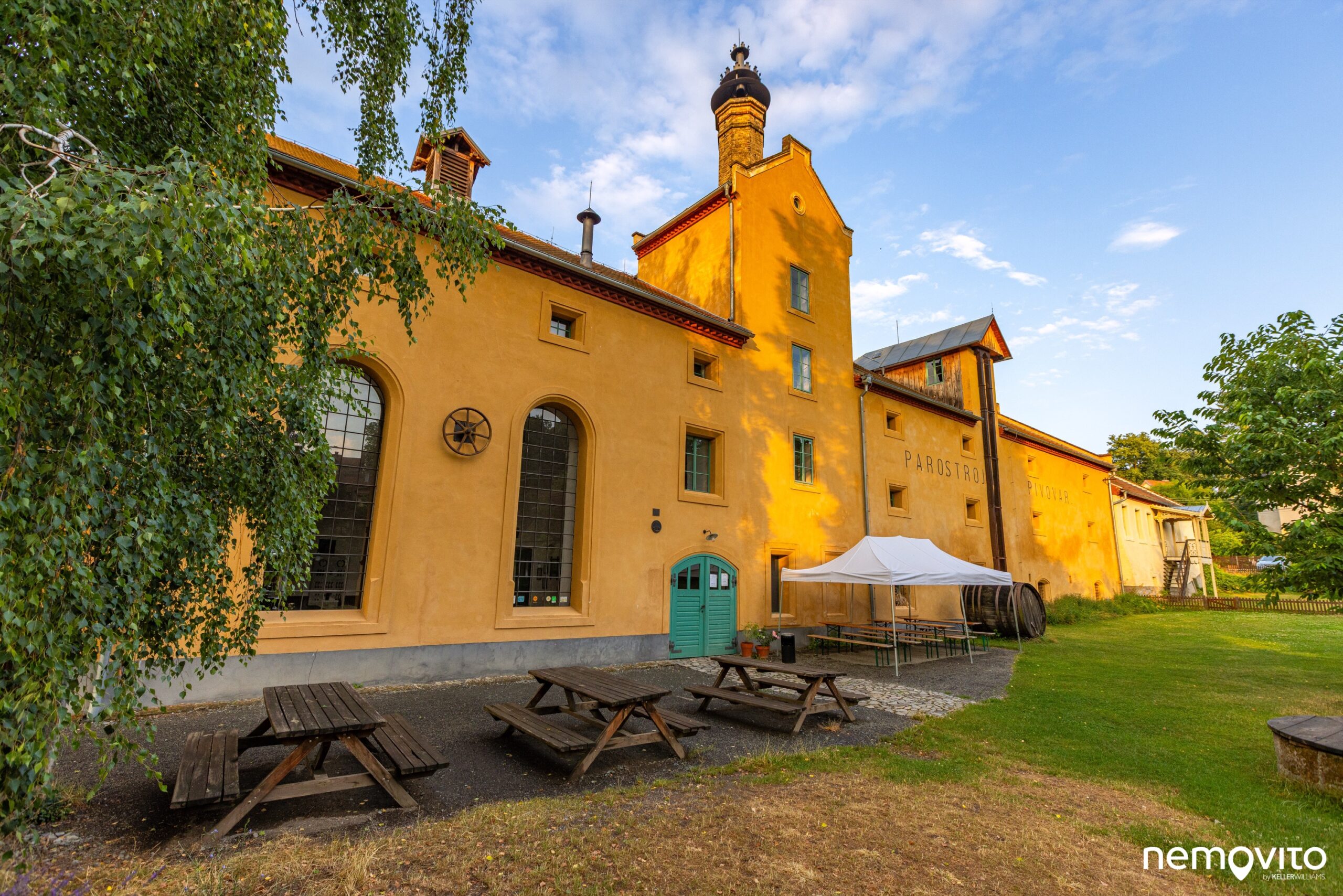Zvenčí působí dům zcela nenápadně a je snadné ho minout. Schovává se za velkou lípou, zatímco vy se schováte za velkou pípou. Přímo naproti je parostrojní pivovar, který je technickou památkou a opět v plném provozu. Na pivo to daleko vážně není 🙂
