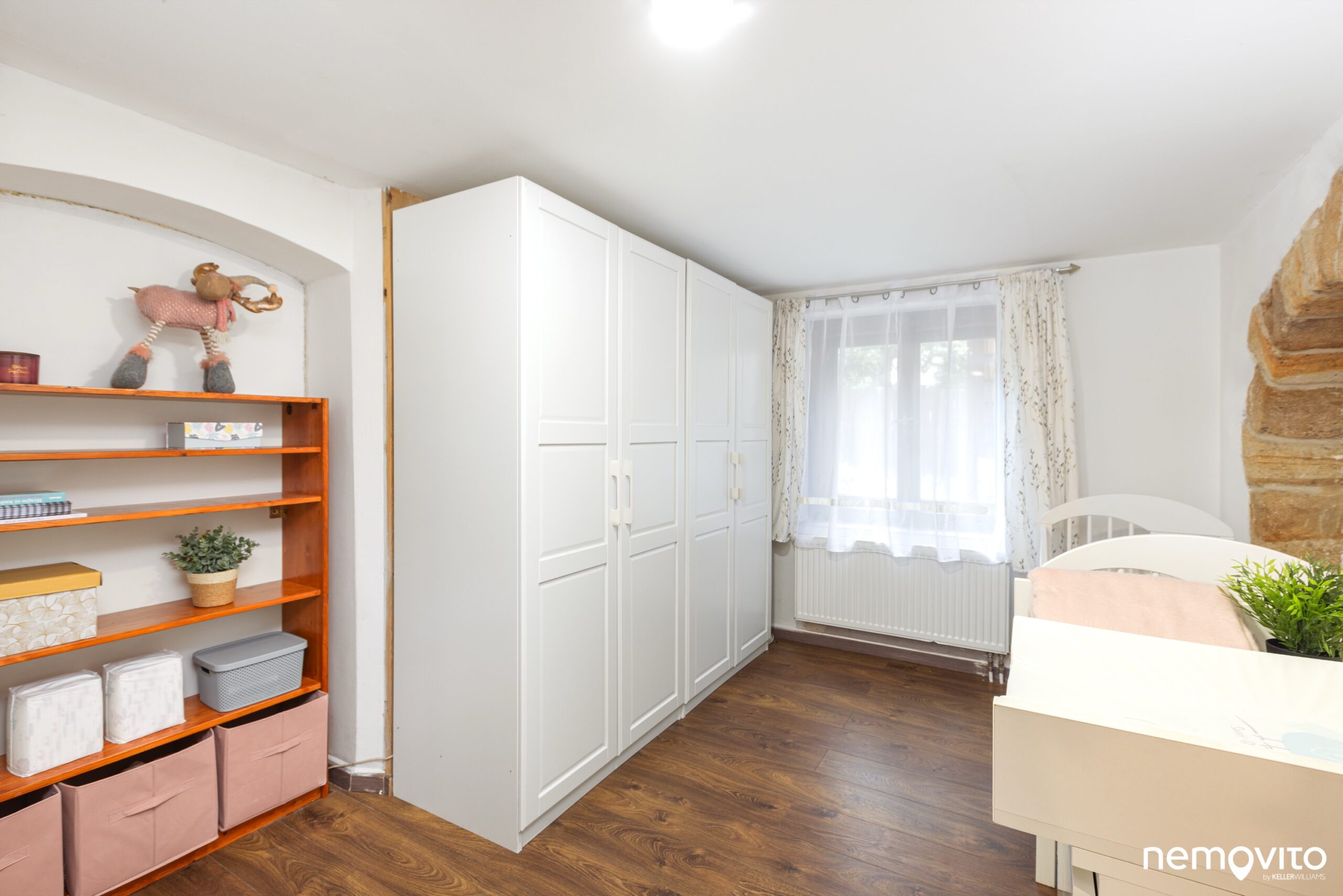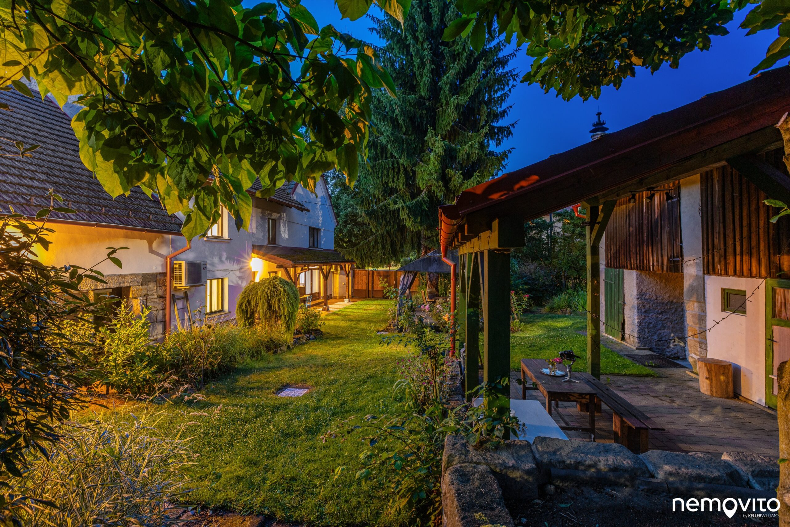 Spojit příjemné s užitečným nemusí vždy znamenat otřepané klišé. V případě tohoto domu, který je doslova na kraji CHKO Kokořínsko, je to každodenní rutina. Ačkoliv slovo rutina je tady trošku nemístné. Právě tady totiž rutinu zaženete do kouta a každý den můžete mít takový, jak jste si ho vysnili. S kachlovými kamny, pořádnou pískovcovou stodolou, saunou, bazénem, dostatkem místa pro kutění, zahrádkaření. Za branami vašeho království nekonečné lány polí, lesů a parádních čundrů. Při každém návratu domů se stavíte v protějším parostrojním pivovaru na jedno. A Prahu stále budete mít v rozumném dosahu - cca 50 km. Tak takhle nějak vypadá ideál - sekci příjemného máme za sebou. Na začátku jsem ale psal také o užitečnosti. A nemám teď teď na mysli užitečnost v podobě zrelaxované hlavy, ale reálného přínosu. Ještě k tomu finančního. V prvním podlaží totiž kralujete vy, zatímco ve druhém provozujete zaběhlý penzion o 3 pokojích a 12 lůžkách. S vlastním vstupem a odděleným pozemkem. Příjem do rodinného rozpočtu tak nově poplyne i z nemovitosti, kterou byste jinak kupovali pro radost a odpočinek. Jestli si ročně vyděláte 100 tisíc nebo půl milionu už je čistě na vás, důležité ale je, že taková varianta opravdu existuje.