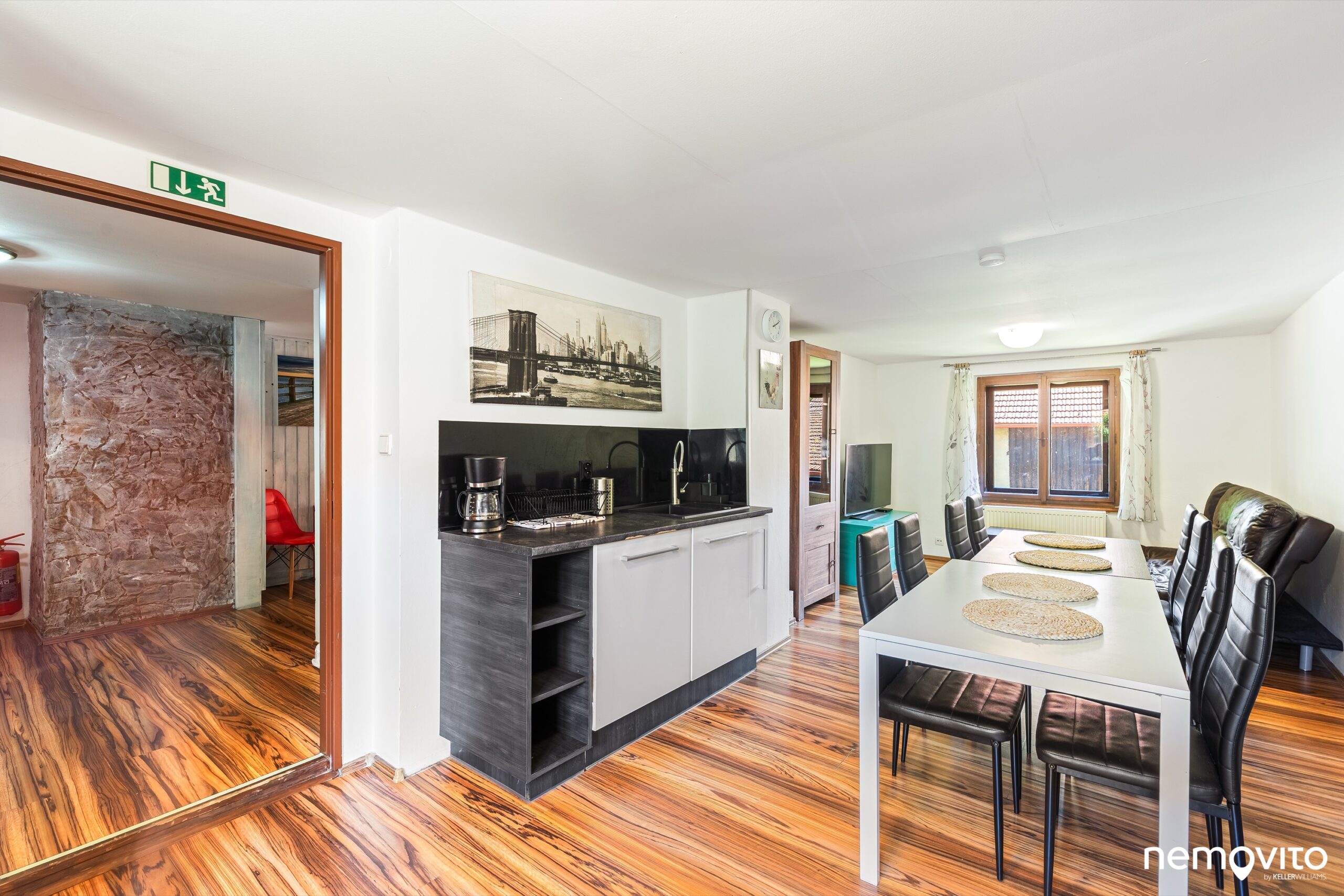 Pokoje i společenská místnost s kuchyní zůstávají kompletně vybavené, v provozu je tedy možno okamžitě pokračovat. Kupovat nic nemusíte.