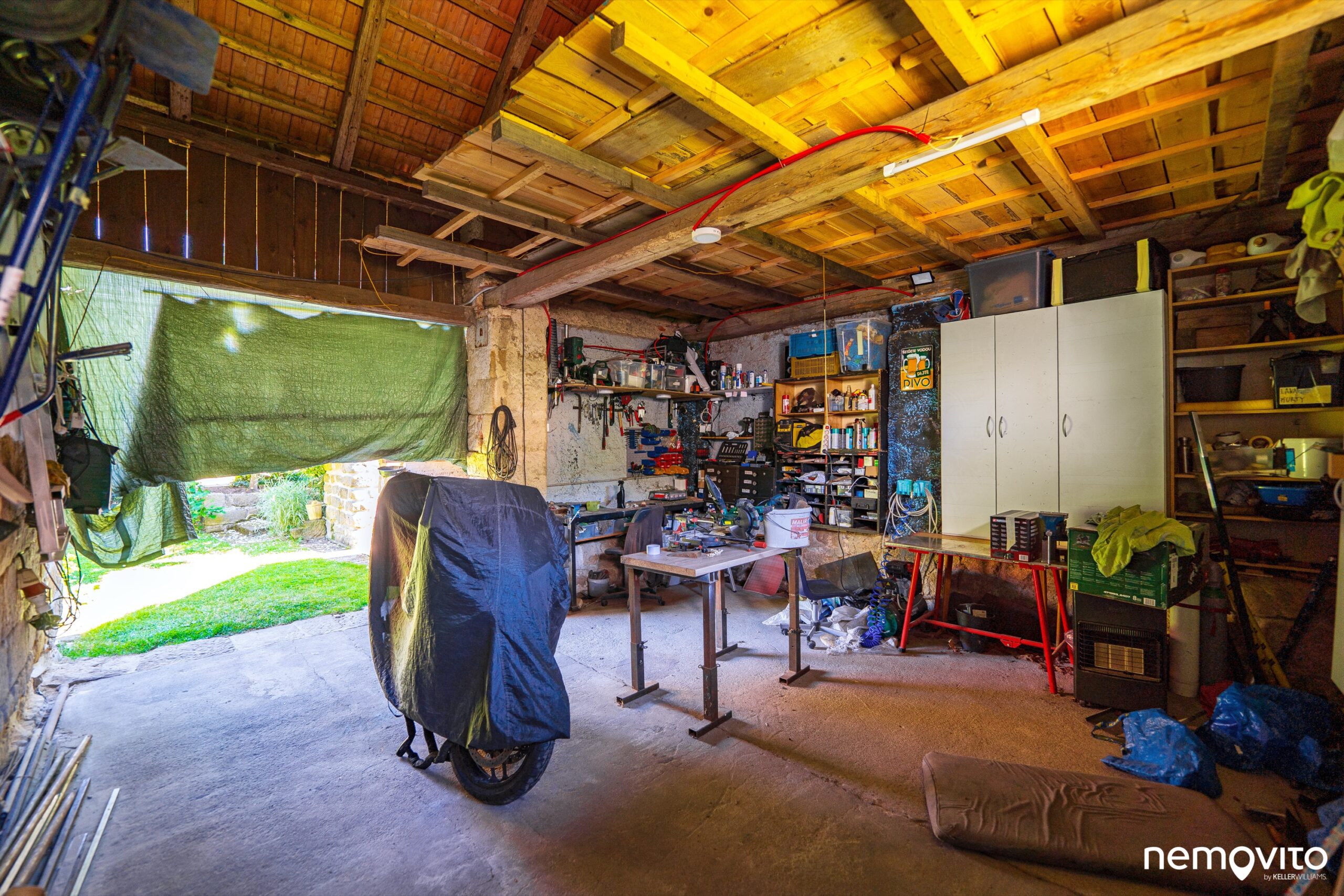 Dvoupodlažní stodola má zastavěnou plochu 82 m2 a je vč. přístřešku zapsaná v katastru. Nejde o černou stavbu. Kdo ví kolik staletí má za sebou. Nachází se v ní několik komor, venkovní kuchyně a také splachovací záchod (voda a odpad jsou tedy zavedeny). Nahoře je pak obrovský otevřený prostor, který čeká na vybudování vaší klubovny.