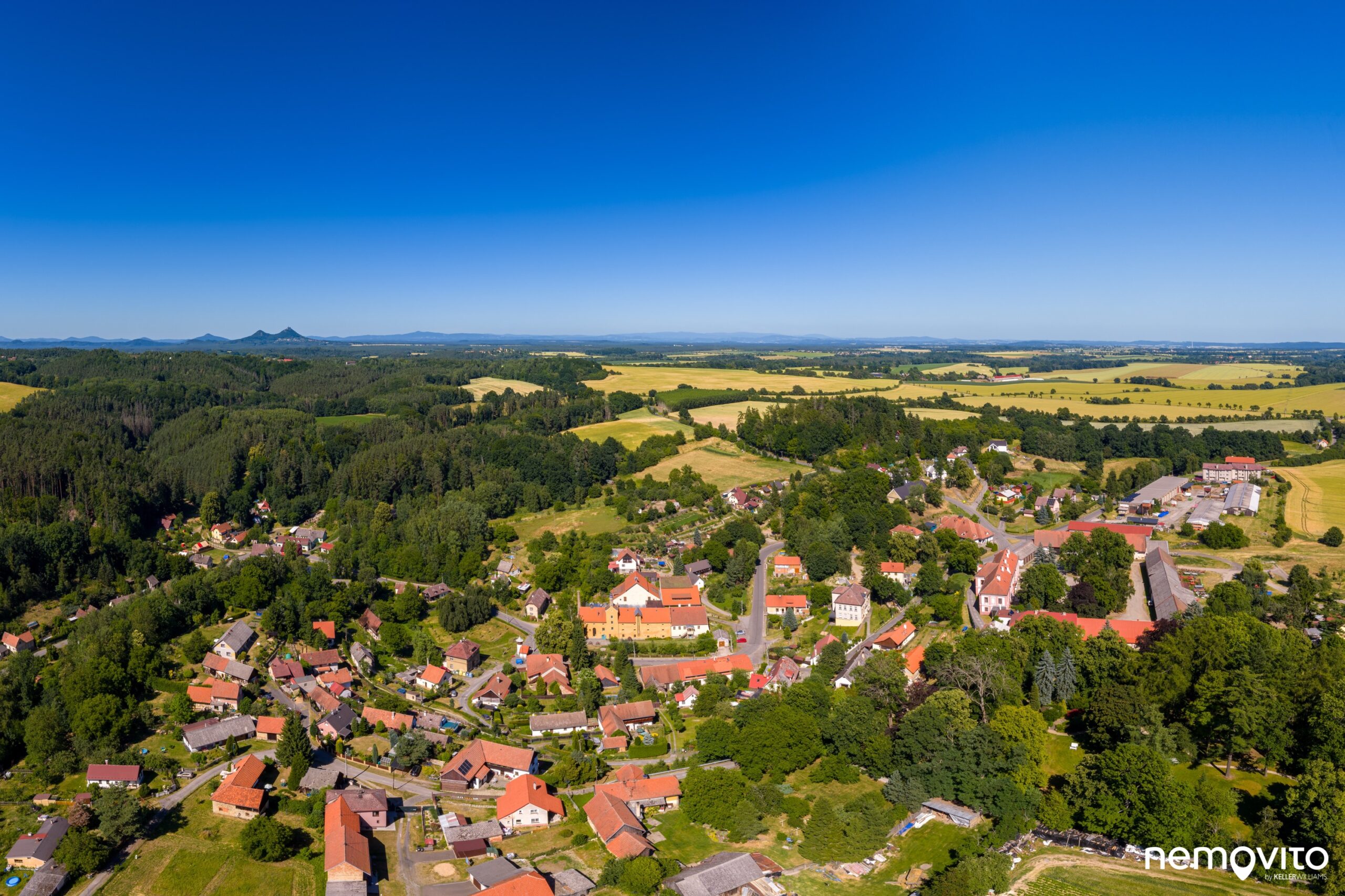 Lobeč jako na dlani. 5 km od Mšena a 13 od Kokořína, jehož lesy obec obepínají ze severní a západní strany. Absolutní ráj pro milovníky přírody, čundrů, ale i prostého klidu. Na fotce v dáli vidíte zřetelně vystupující hrad Bezděz. Ti se silnými znalostmi a zoomem pak mohou vidět také Ralsko, Ještěd nebo Krkonoše a Sněžku. CHKO Kokořínsko začíná doslova přes ulici, protější pivovar už do něj spadá. Možná maličkost, ale pro povolování úprav staveb a podobně je to diametrální odlišnost.