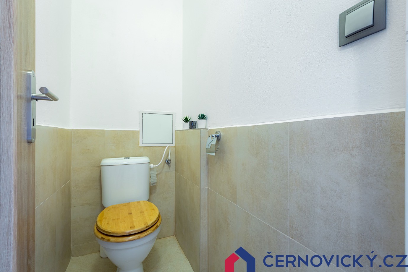 Na běžné poměry bytů této velikosti je koupelna skutečně prostorná a navíc skvěle provedená. Příjemným a méně vídaným parametrem bytu 1+kk je samostatná toaleta.
