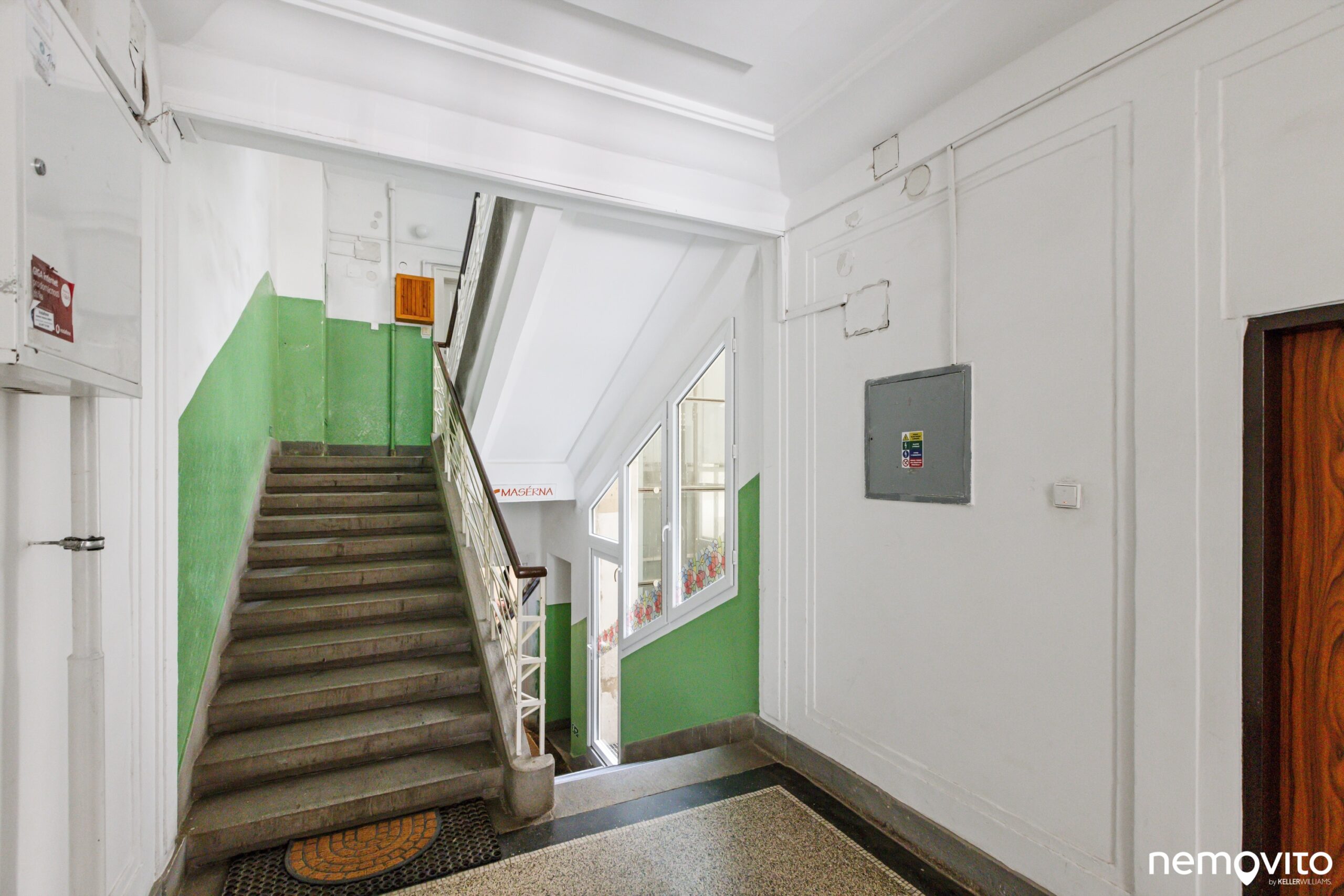V domě jezdí výtah a tak když vyrazíte na střešní terasu, pěšky nemusíte. Při vstupu do bytu se bez něj však obejdete. Dům je architektonicky velmi zajímavý, nicméně v uliční straně okna do bytu nehledejte. Vše je na opačné straně.