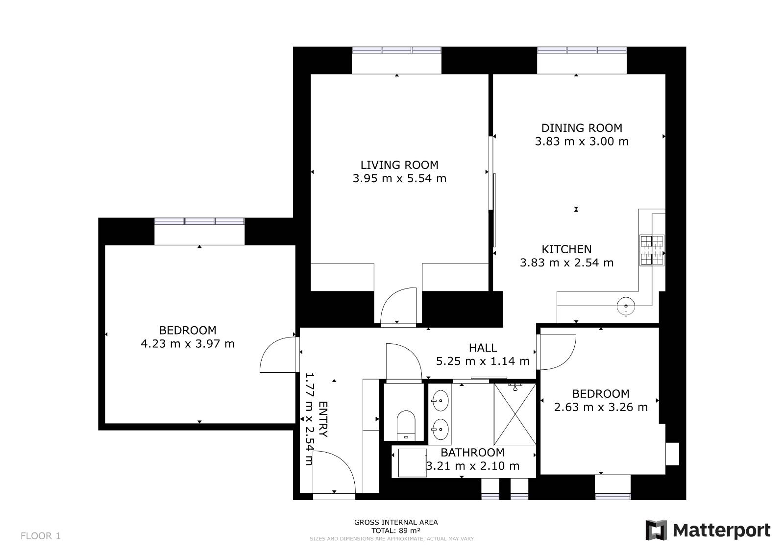 Okna jsou skutečně velká (2 metry na šířku, 160 cm na výšku) a do bytu tak posílají spoustu denního světla, které navíc není stíněné protější budovou. Ta je vzdálena 40 m v nejbližším bodu. V jídelně vám tak do talíře nikdo koukat nebude.
