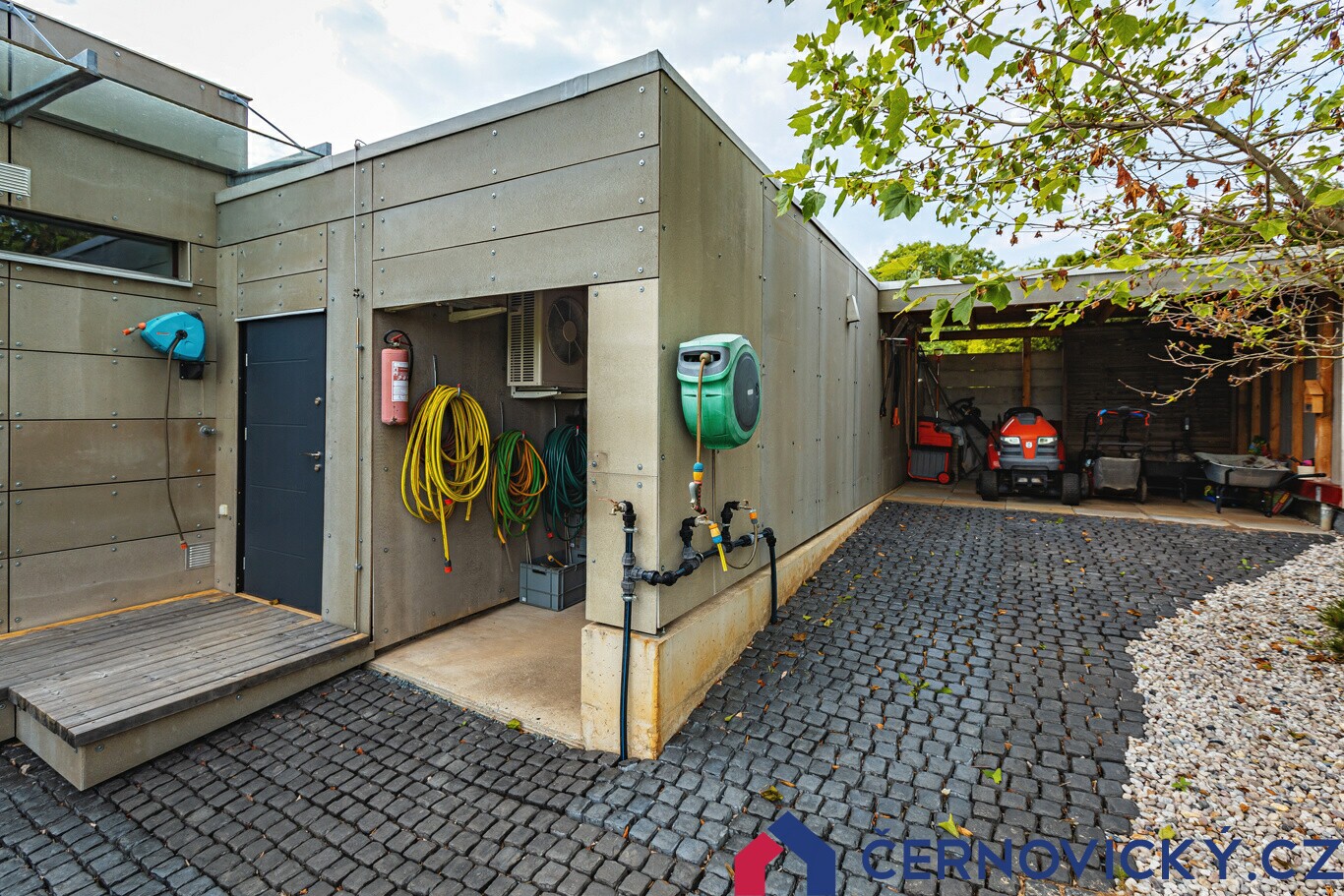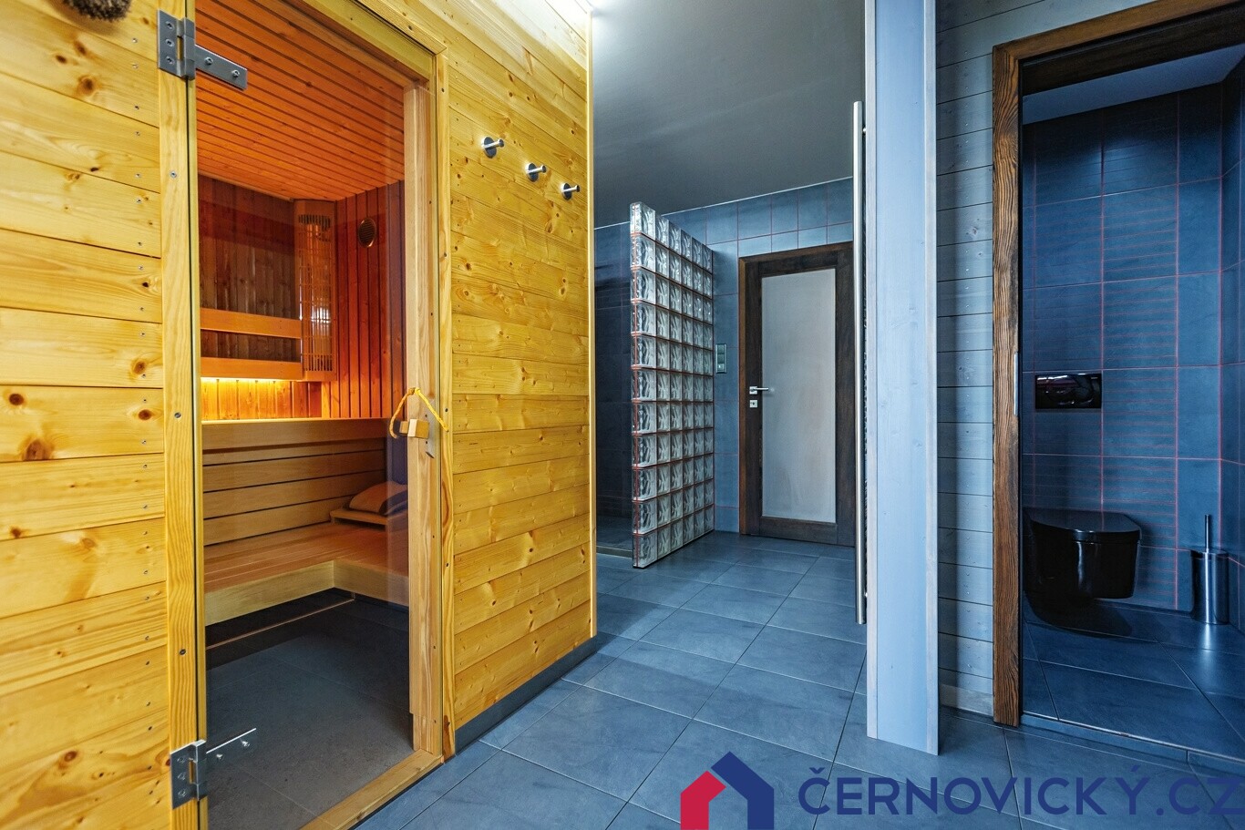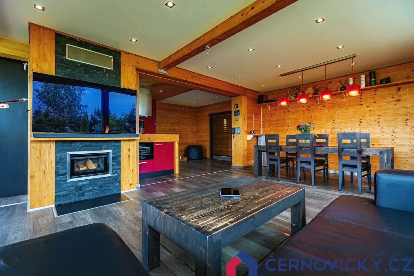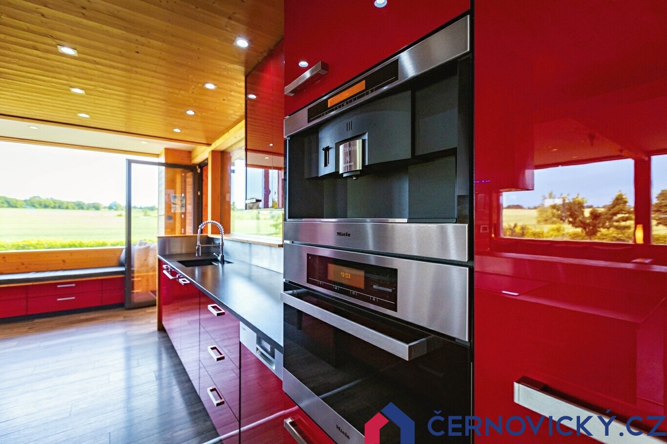Vytápění trojicí tepelných čerpadel, rozvod teplého vzduchu z krbu po domě, solární panely, sauna, bezrámová okna, centrální vysavač, rozvody audio, obrovská garáž a extrémně nízké náklady na provoz. To je jen bleskový výčet vlastností a zajímavostí domu. Majitel se mnoho let živí prováděním dřevostaveb. Na tomto domě se maximálně vyřádil, aby naplnil své vysoké nároky.