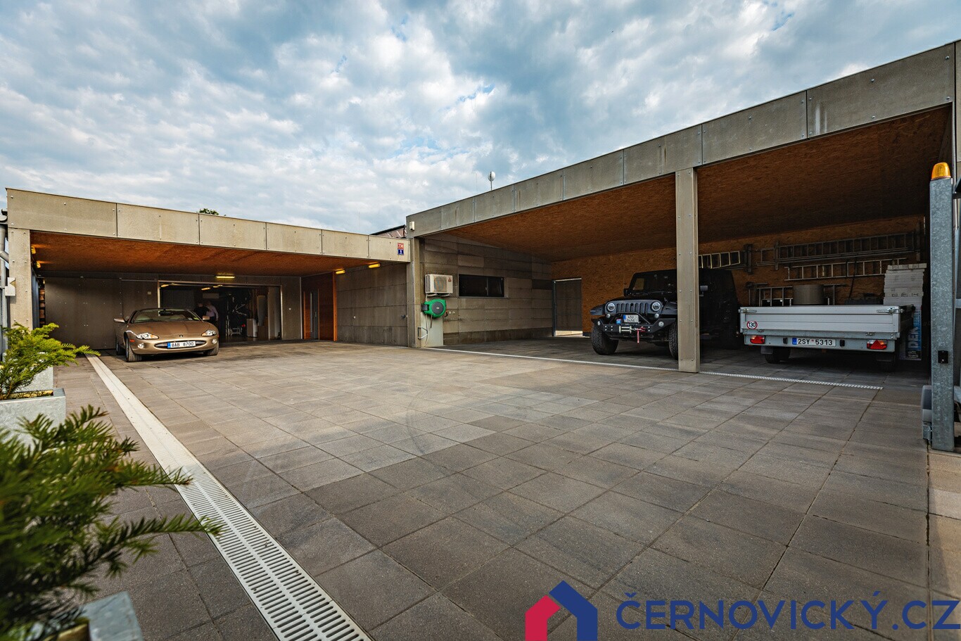 Je tu totiž dalších skoro 120 m2 plochy krytých stání, pod která se vejde i obytný vůz. A nebo opravdu velká spousta aut.