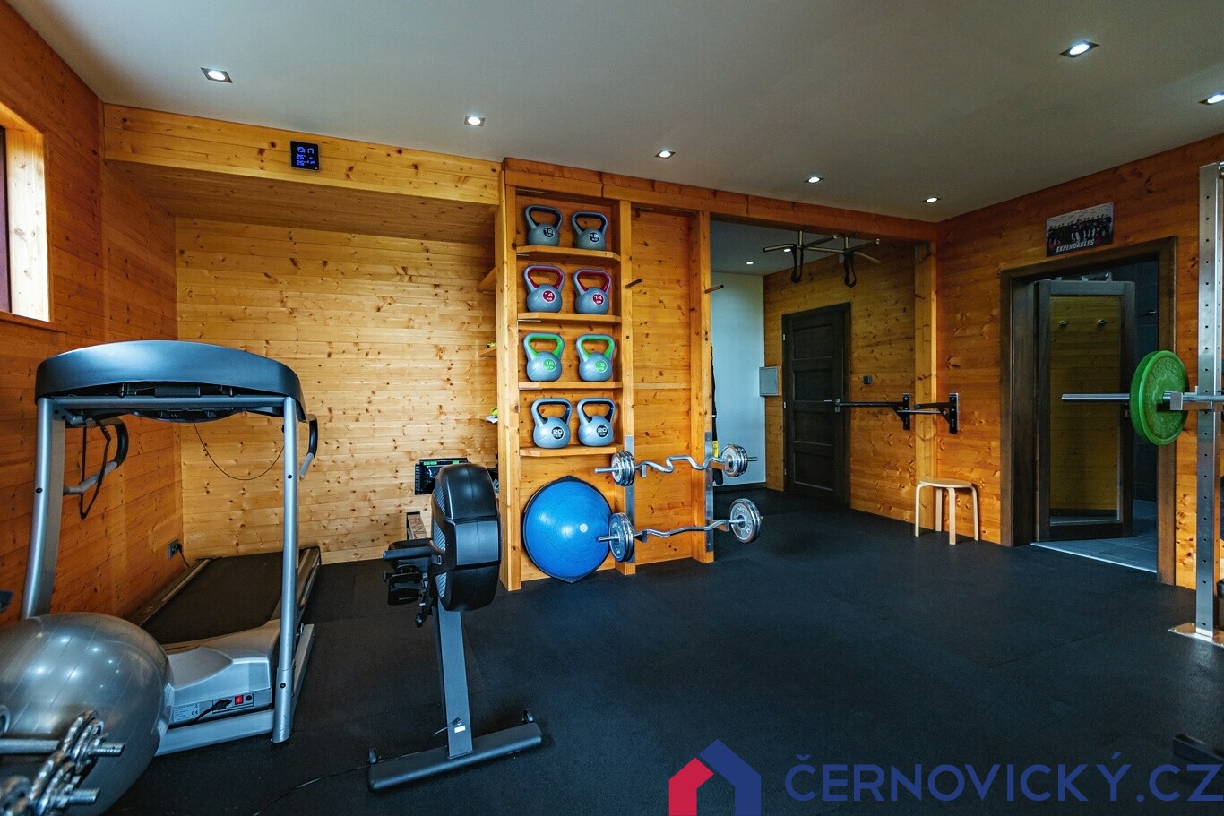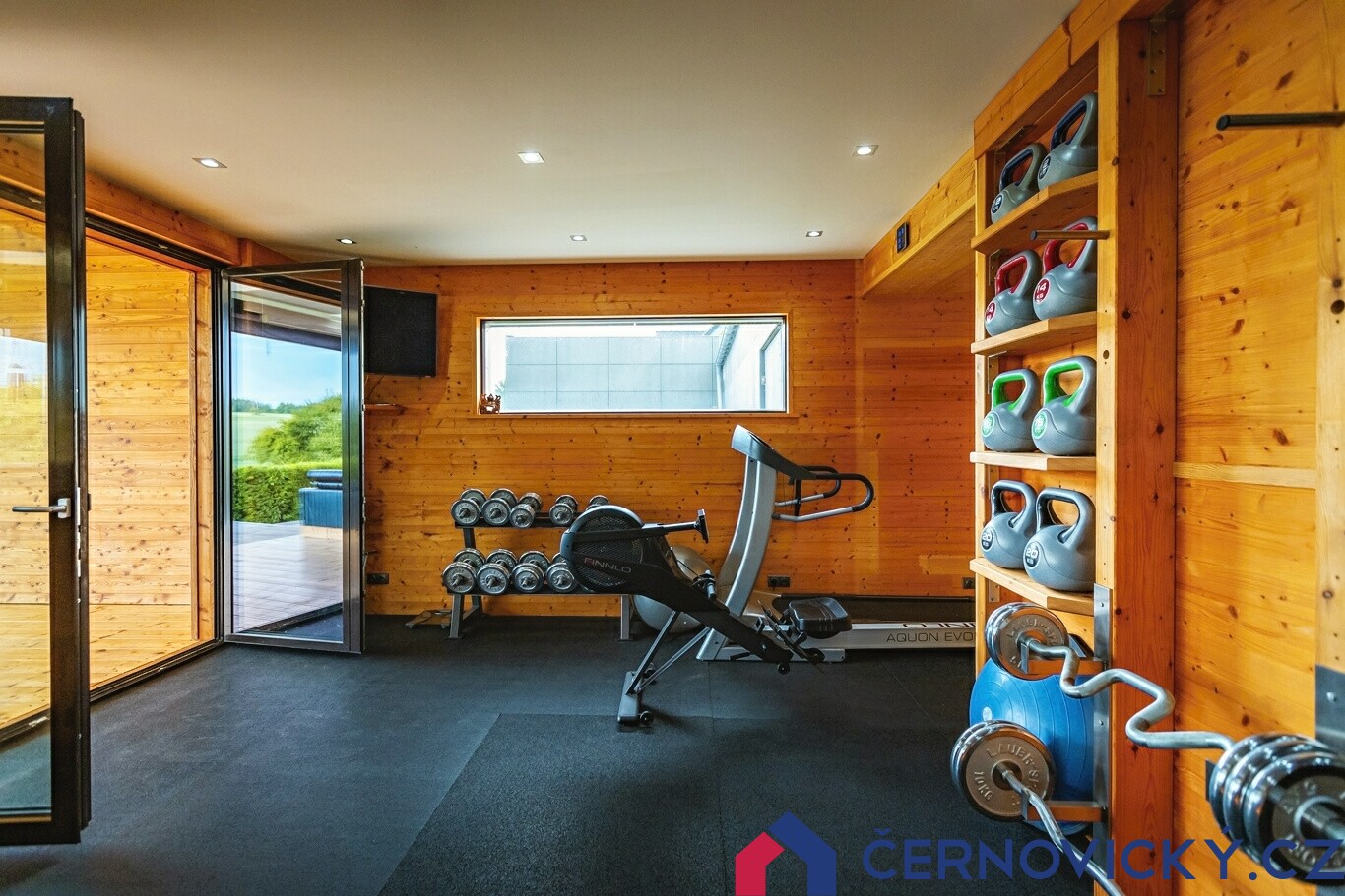 Pro všechny milovníky posilování a cvičení tu máme velkorysých 31 m2, na kterých můžete řádit od rána do včera. Klidně tu ale můžete mít i ložnici, velká okna a dveře na terasu vám tu budou výhledem zpříjemňovat ráno. Ať už z postele nebo z běžeckého pásu. Zmíněná koupelna se saunou je přístupná přímo z této mítnosti.