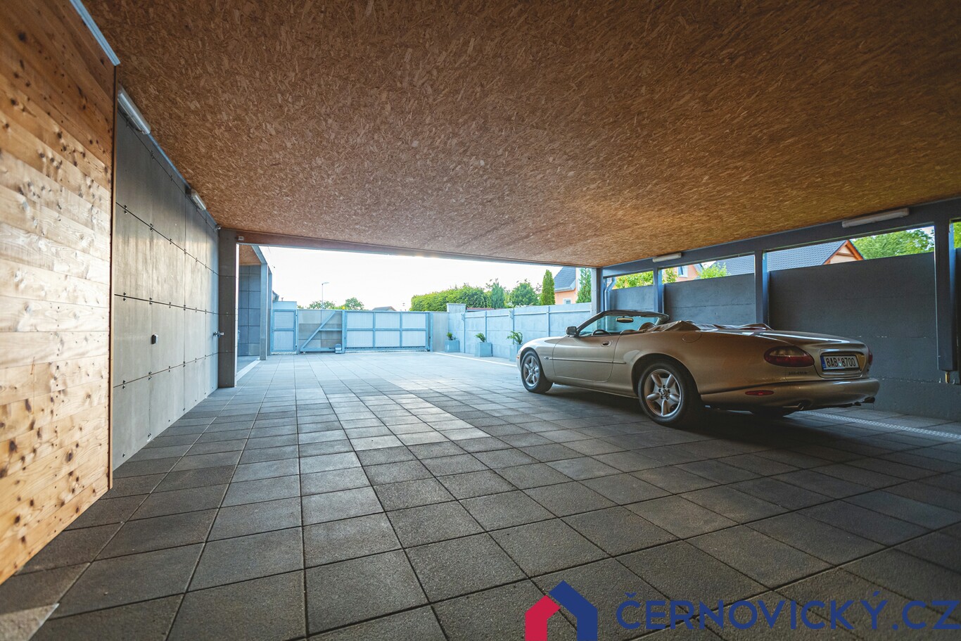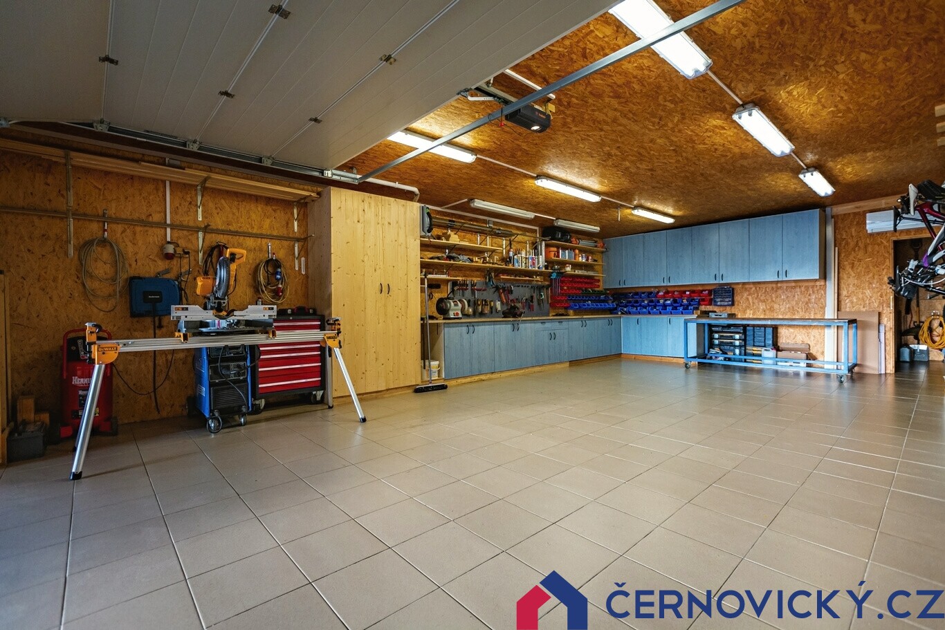 Co dům nabízí vašim živým láskám, to už jsme prošli. Teď jsou na čase ty plechové. Pro ty máme královskou 70 m2 garáž, která je vytápěna samostatným tepelným čerpadlem s funkcí temperování. Rozvod centrálního vysavače je i tady. Pokud budete chtít garáž využít jako dílnu a nebo klidně rozšíření obytného prostoru, i tak vám na auta pršet nebude.