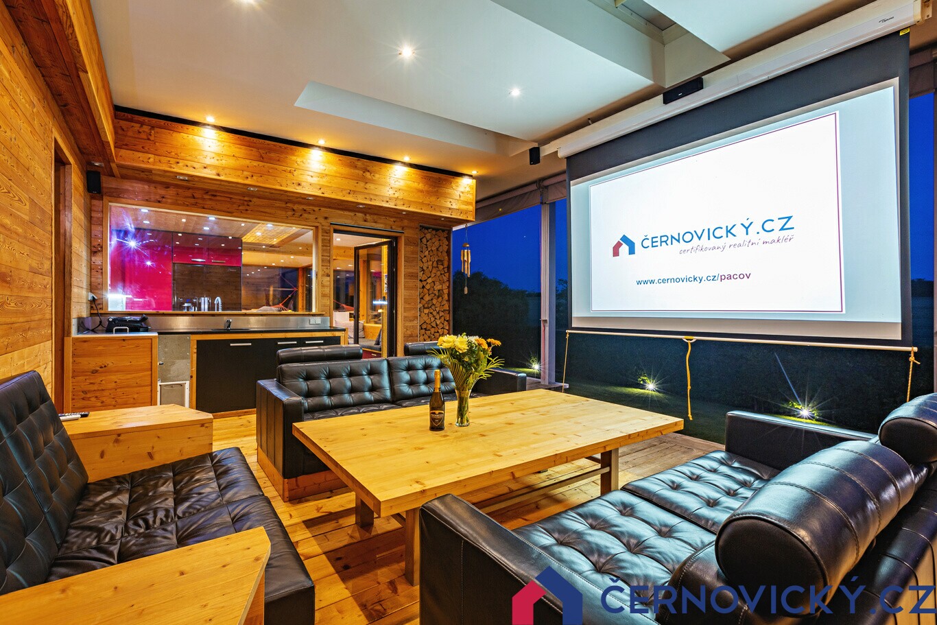 .. a venkovní kuchyni s elektrickým grilem. Večerní posezení u filmu nemusí být nutně v obýváku, vaše soukromé kino už čeká. Ozvučení, projektor i plátno. Stačí už jen vybrat váš oblíbený film.
