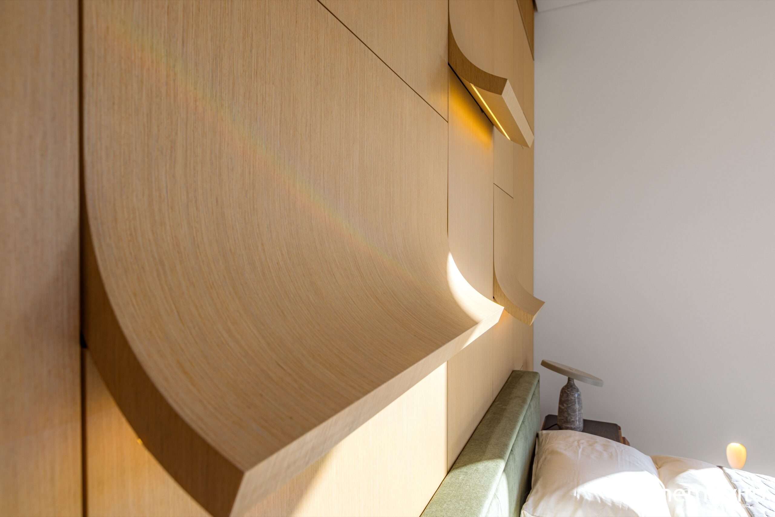 Chodbou, která jinak bývá ukrytá ve dveřích, které dvoří segment dřevěného obložení kolem televize, se dostáváme do sekce master bedroom. Ta je skutečně působivá už jen svou plochou.