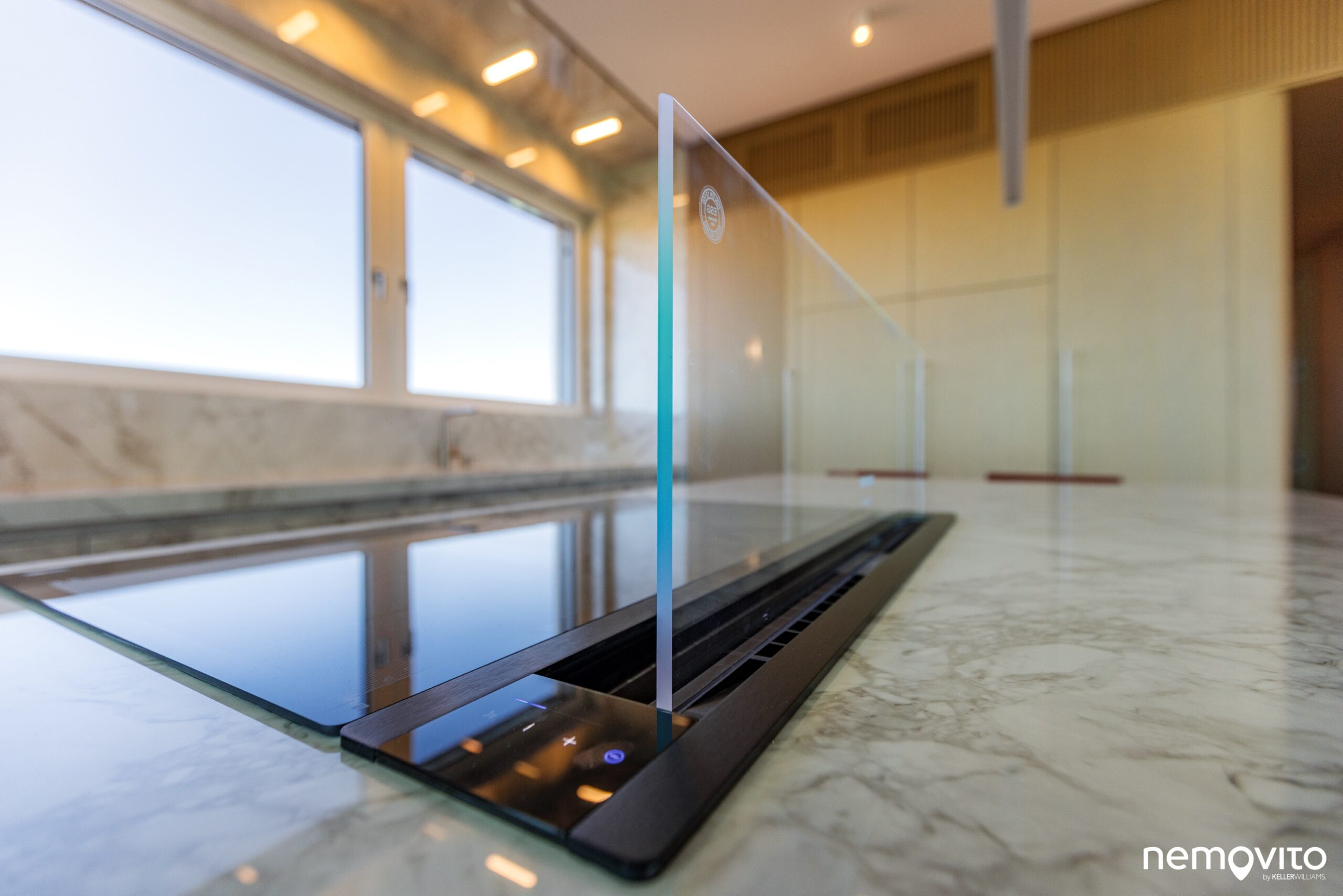 Pod omítkové baterie, šikovně umístěné niky nebo skleněné segmenty, které sotva postřehnete. Jejich přítomnost prozradí spíše lámající se světlo.