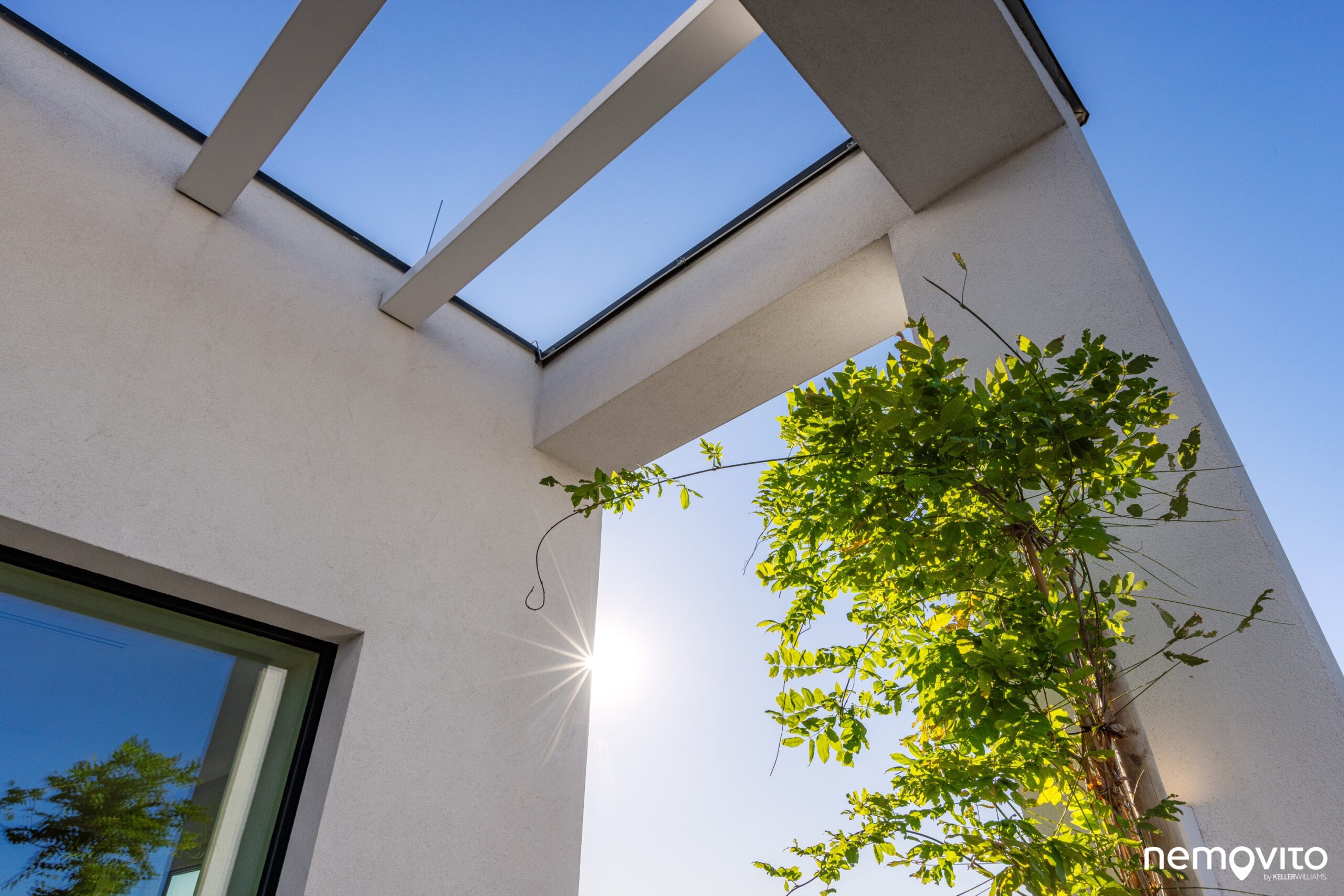Terasa o velikosti 74 m2 je po otevření okna, které je poháněno motorem, propojena s téměř stometrovým obývákem. Okno je mimochodem jedno z největších, které lze v aktuálních podmínkách na českém trhu vyrobit. Je poháněno vlastním motorem.