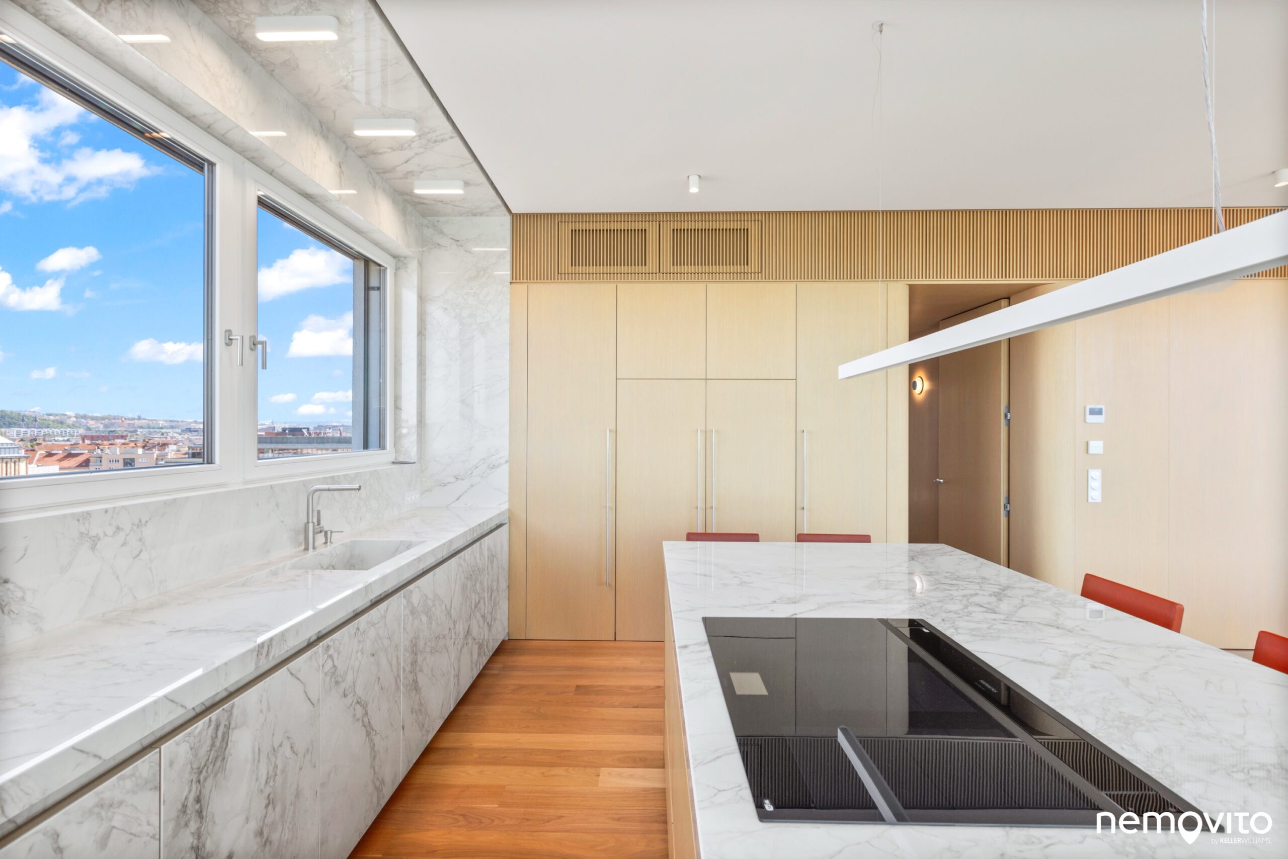 Penthouse v nejvyšším podlaží projektu Prague Marina Nova je ukázkou toho nejlepšího, co lze aktuálně na poli zbrusu nových bytů pořídit. A to nejen ve smyslu prostoru, příslušenství nebo standardů samotného projektu. Byt je kompletně vybaven mimořádně kvalitním nábytkem a je výkladní skříní developerské společnosti Daramis. Ta má na svědomí fantastickou proměnu přístavní části Holešovic, kde postupem let vznikla upravená lokalita plná nejen kvalitních bytů, ale taky řady podniků a dalšího vyžití. Ne nadarmo pak patří Holešovice mezi nejprogresivnější pražské lokality, kde se mimochodem prodal vůbec nejdražší byt v ČR za celý loňský rok. Lokalita, kde mají špičkové byty své místo, vám nově nabízí těchto více než 250 m2. Na každém kroku ucítíte cit pro detail a snahu o nemilosrdné vyhlazení kompromisů. Jsou nemovitosti, kam kompromis nepatří. V nejvyšším podlaží nejvyšší rezidenční budovy holešovické mariny vás čeká opravdový sen, který snese srovnání i ve světovém měřítku.