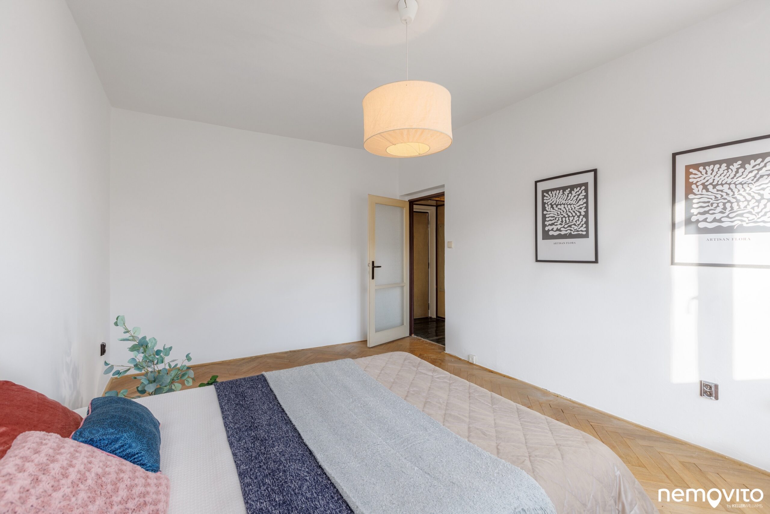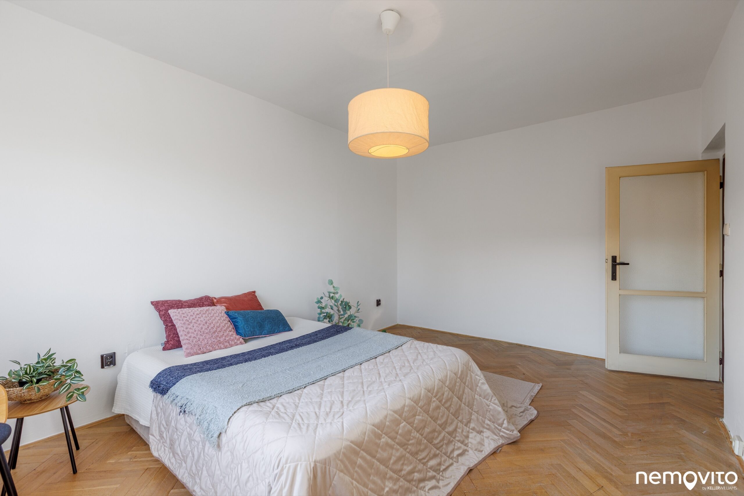 Ne snad, že by posledních 50 let ležel bez povšimnutí ladem, třeba taková koupelna již v minulosti úpravou prošla. Je ale fér přiznat, že byt je nutné zrekonstruovat. Přesto v něm řadu věcí nechat můžete. Například takové dřevěné parkety, ty by byl zločin z bytu vytrhat. Prostoru dodávají příjemnou hřejivou atmosféru a v dnešní době jsou typickým znakem bytů vyššího standardu. Kdo nechcete na podlahách chodit po plastu a po gumě, vkročili jste na správné místo. Pomocníkem pro příjemnou atmosféru je bezesporu také slunce, kterého si užijete dosyta. Orientace na jih a mezi domy 30 m prostoru, které vyplňuje několik vzrostlých stromů. Petřiny nejsou typické sídliště. Menší domy, slušné rozestupy, hromada zeleně a kolem dokola řada významných a krásných míst. Kdo kdy vyrazil na běh nebo na doutníček do zahrad kláštera nebo Hvězdy, ten mi jistě dá zapravdu. Ne nadarmo pak Praha 6 obecně patří mezi nejdražší pražské části, do centra je to prostě kousek. V tomto případě na Staromák přesně 10 minut jízdy metrem.