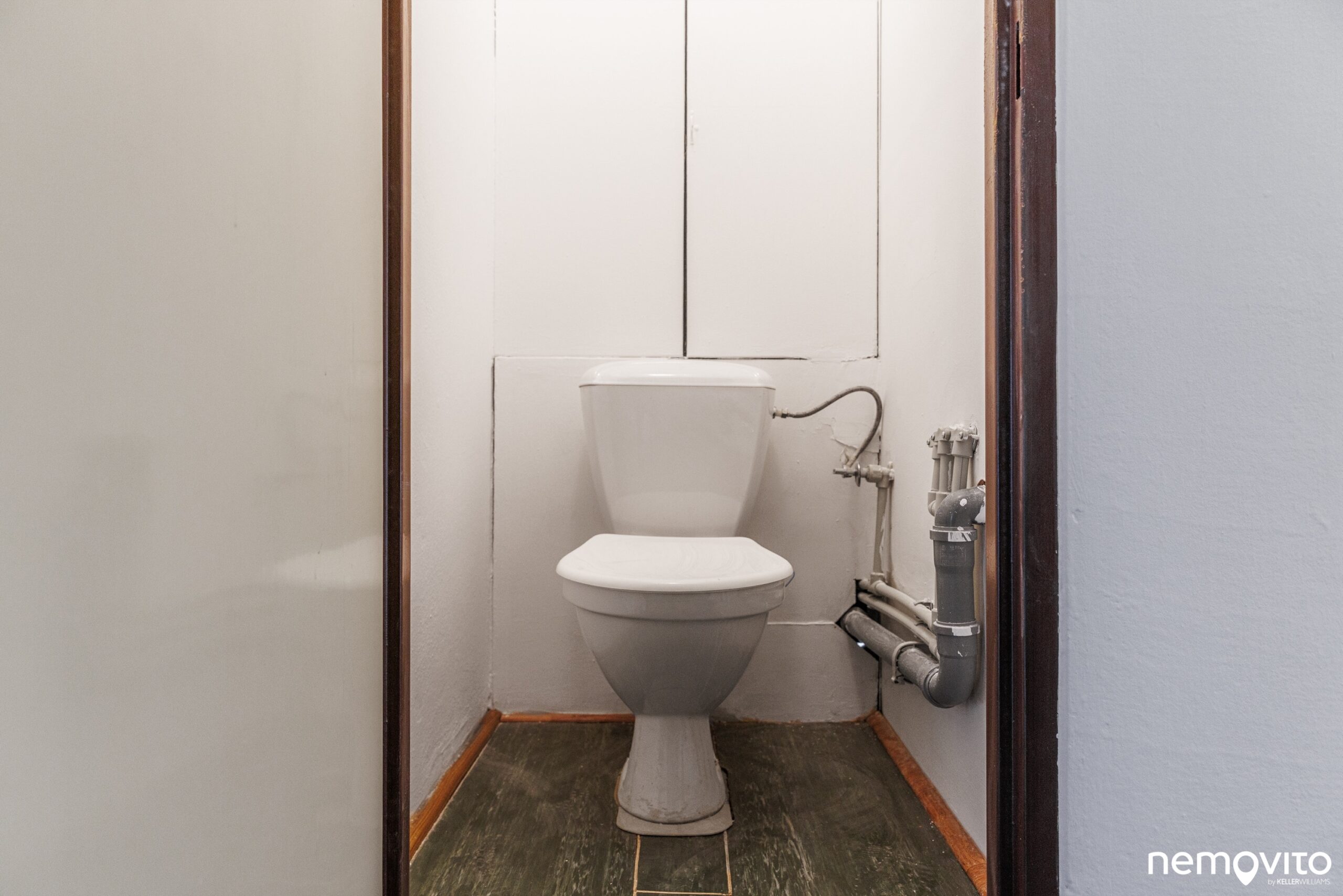 Toaleta je oddělená od koupelny, stoupačky jsou již po výměně. Koupena prošla před lety rekonstrukcí a je použitelná, nicméně berte na vědomí, že celý byt je vhodný na kompletní předělání.
