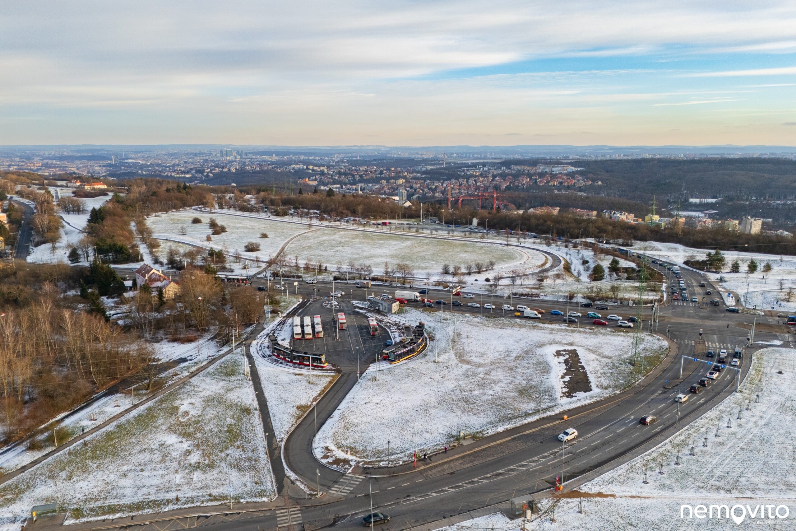 Za zhruba stejnou domu dorazíte také na Vypich, kde vás čeká několik dalších tramvajových i autobusových linek a také další lány zeleně na Ladronce.