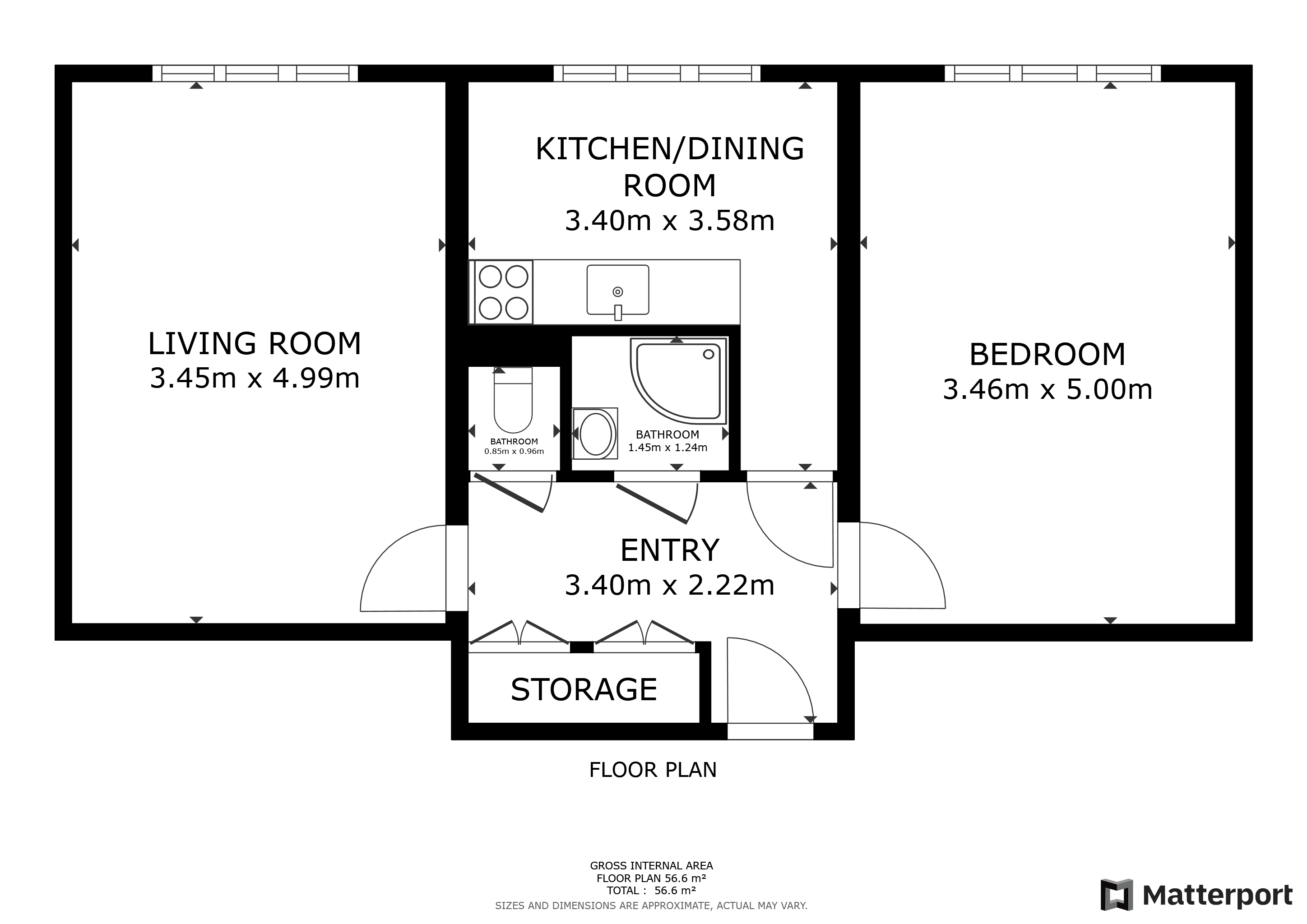Místnost má rozměr 3,4 metru na šířku, 5 metrů na hloubku.