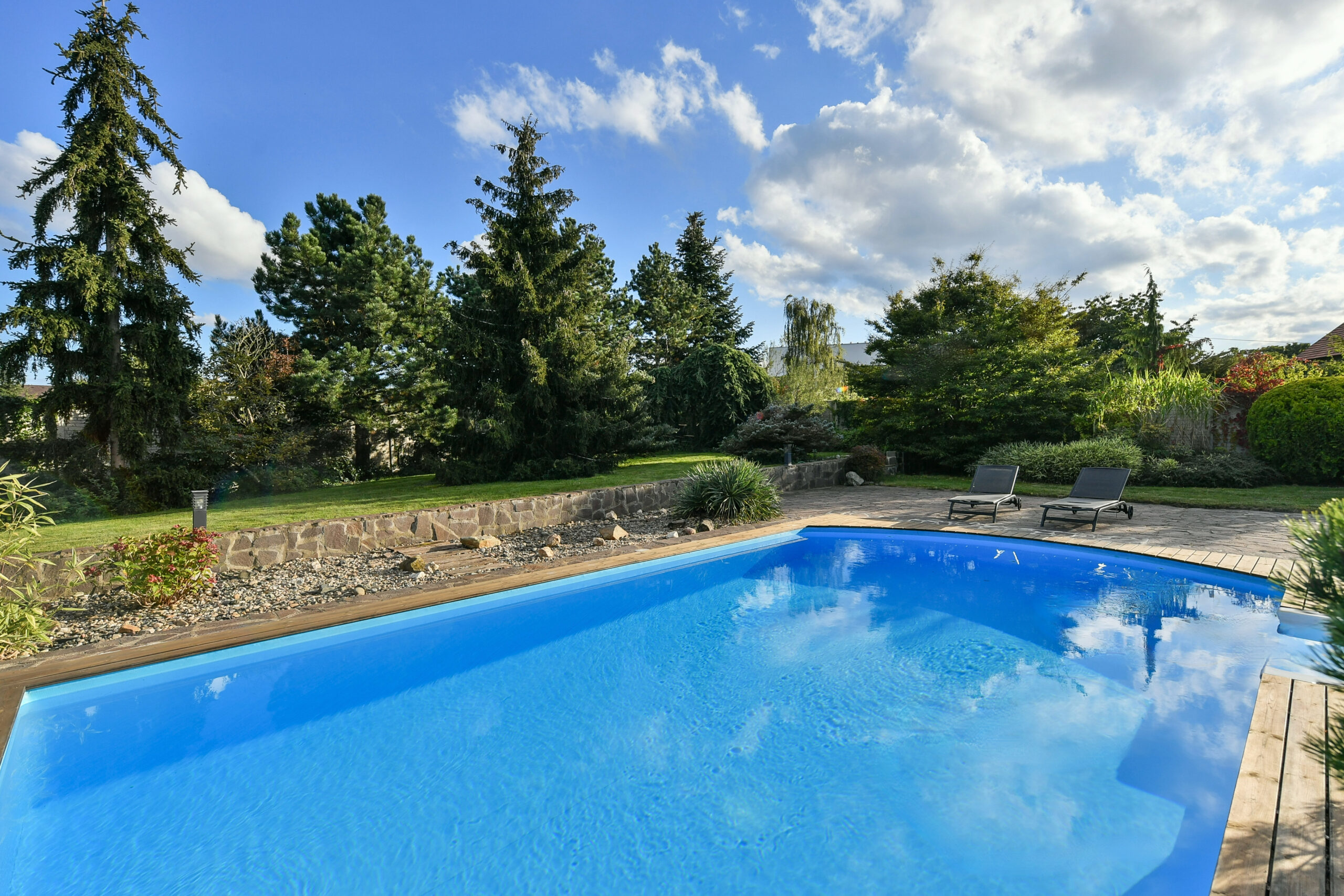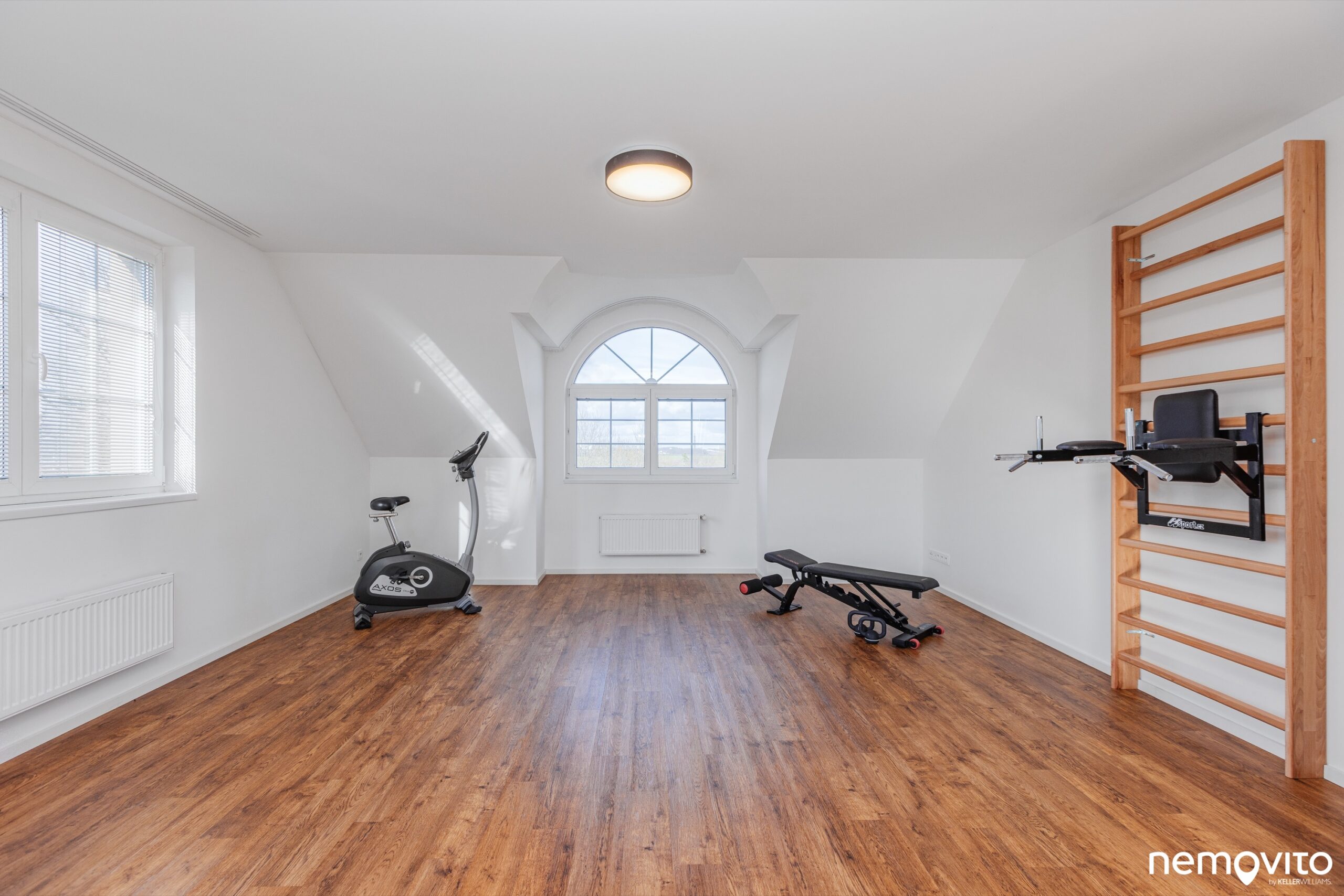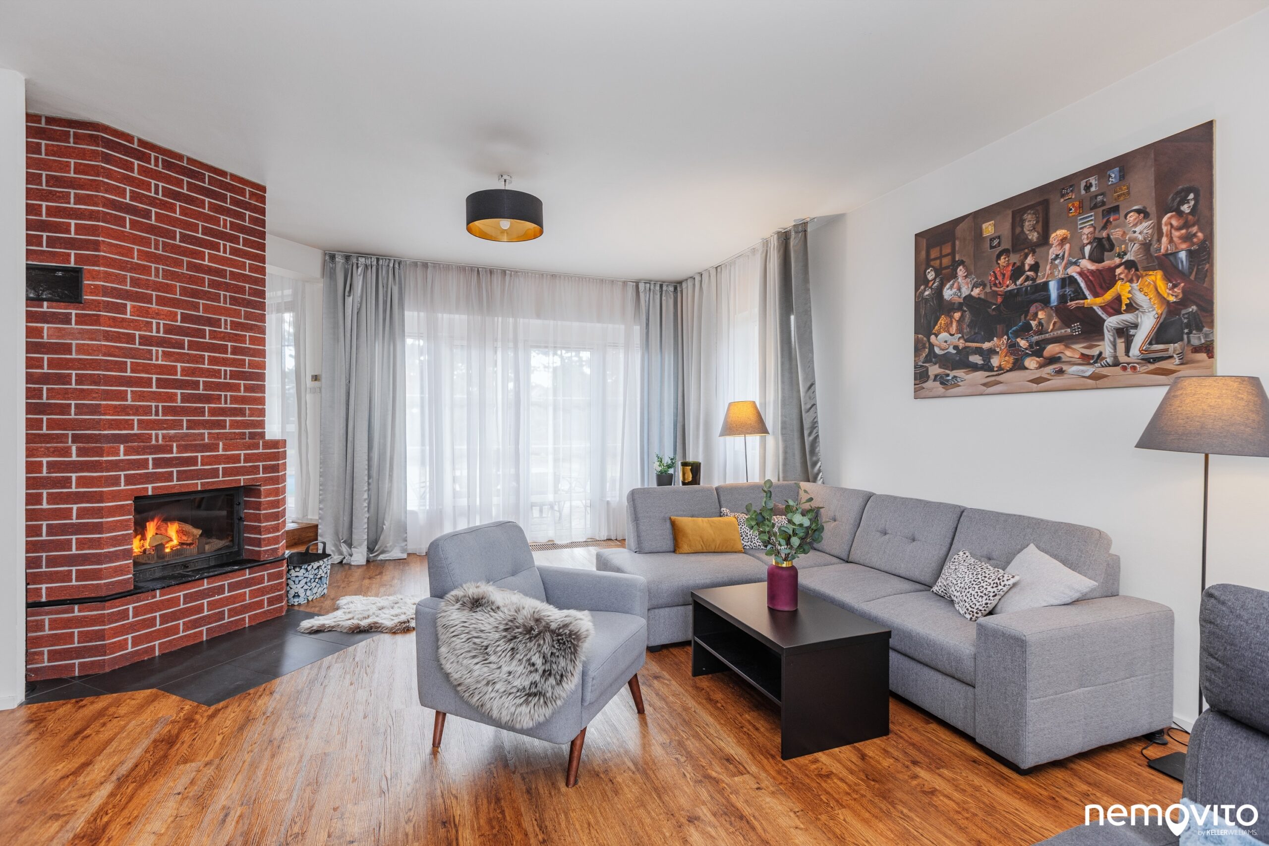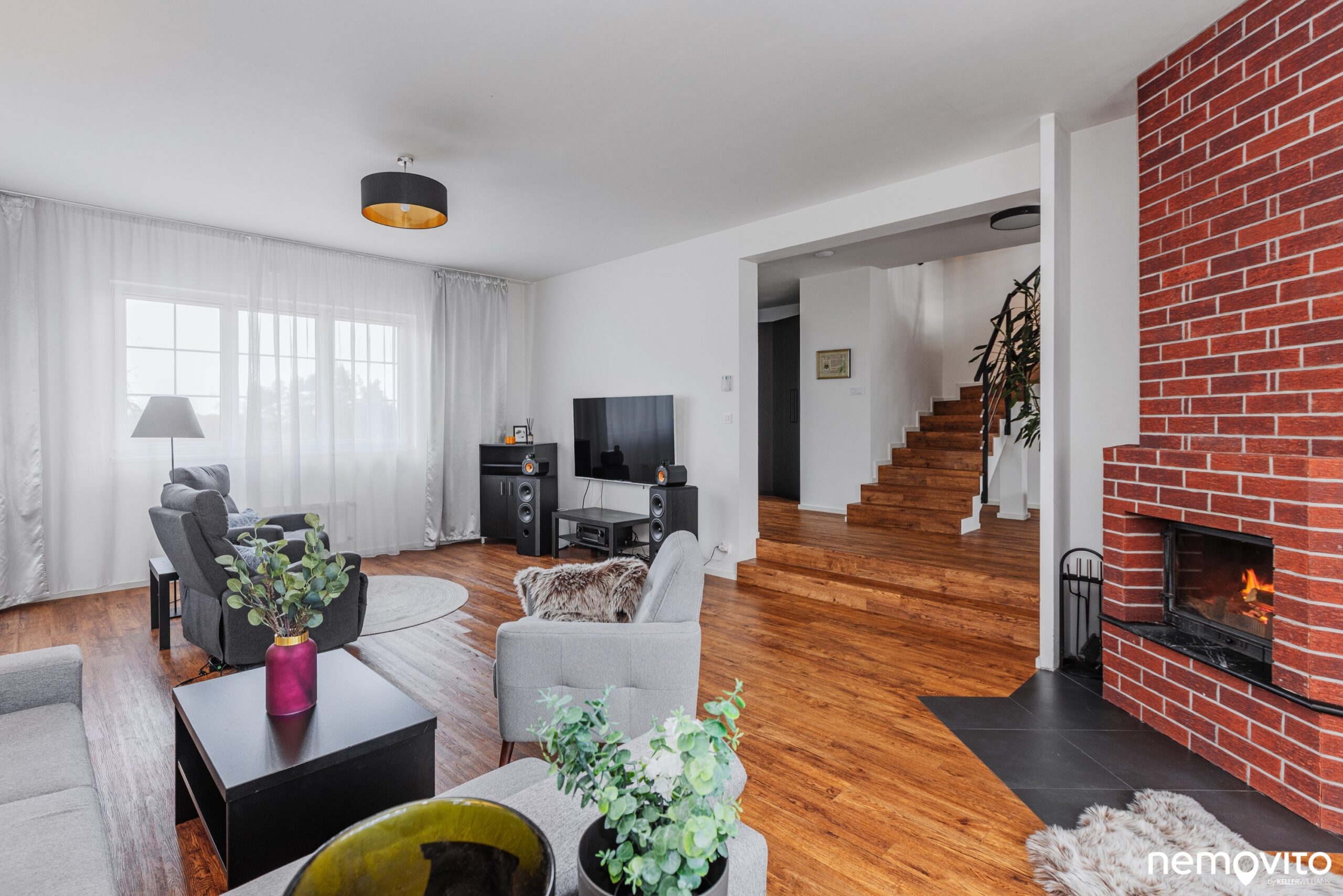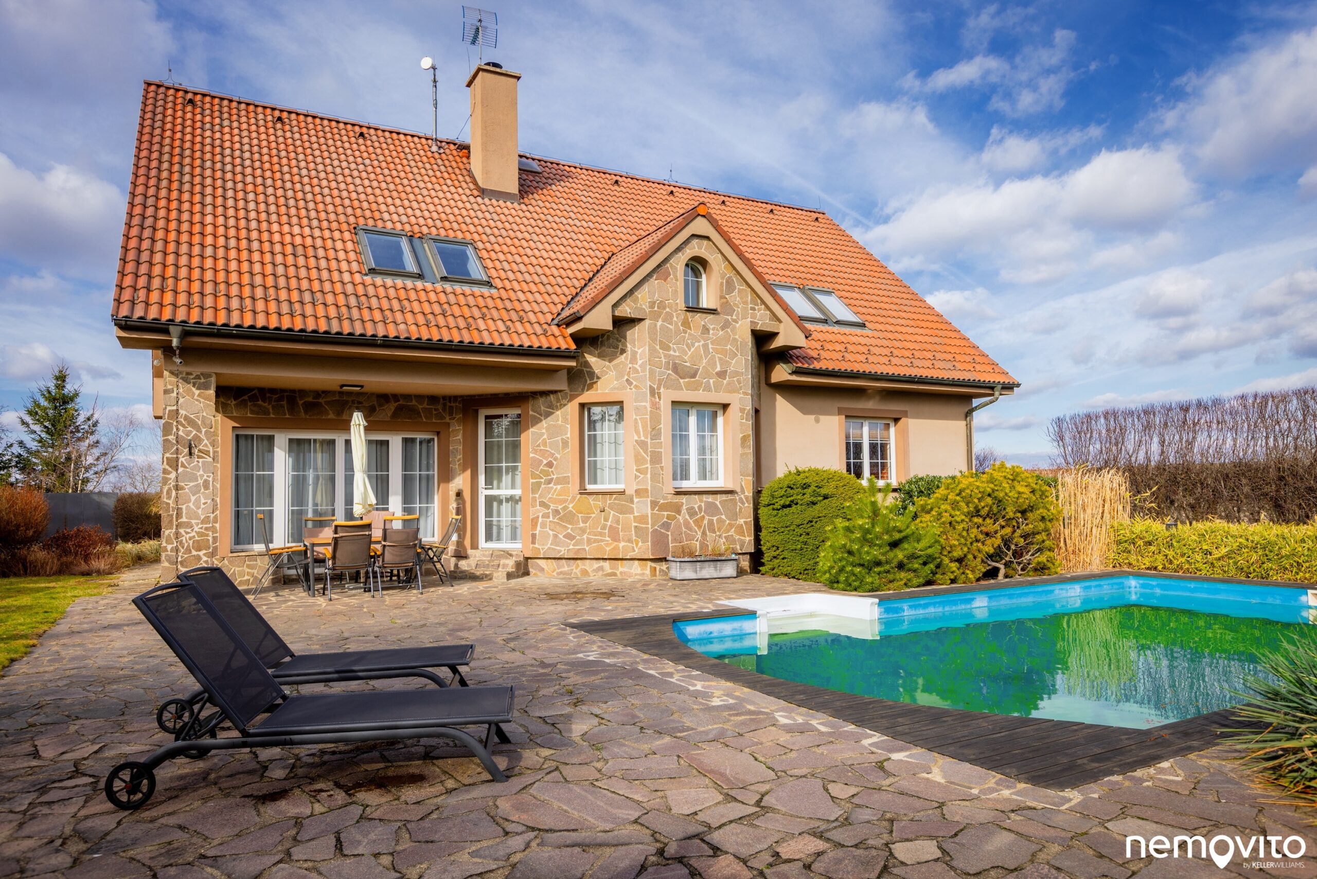 4+1, bezmála 300 m2, garáž na dvě auta a opravdu velké pokoje. Žádné miniaturní kamrlíky. Tohle je dům z doby, kdy se ještě stavělo velkoryse. Pořádné ložnice a žádné třicetimetrové obýváčky. Největší ložnice tady má dokonce obřích 48 m2 a vznikla spojením dvou pokojů. Znamená to tedy, že z domu klidně uděláte o místnost větší. Tou největší silou domů z této éry je právě jejich prostorové pojetí, ve kterém vás nesvazují stěny blízko sebe. Tak nějak lépe se tu dýchá. Typický důvod pro koupi prověřené stavby z přelomu milénia jsme tedy již probrali. Není ale jediný. Pro ty z vás, kdo chtějí místo holého plácku skutečnou zahradu, ve které už je na co koukat, tu existuje ještě jeden. A tím je právě pozemek, na kterém není mrtvo, ale přesně naopak. Vzrostlé stromy, keře a pro vaše ratolesti nezbytný bazén. Od věhlasného průhonického parku vás sice dělí rovný jeden kilometr, ale mít na svém pozemku zelená zákoutí a klídek, to se při náročném dni rozhodně hodí. Svou kávu si tedy v létě vychutnáte mezi stromy, zatímco v zimních plískanicích oceníte praskající oheň a vůni dřeva. Co by to bylo za dům, kdyby v něm chyběl krb.