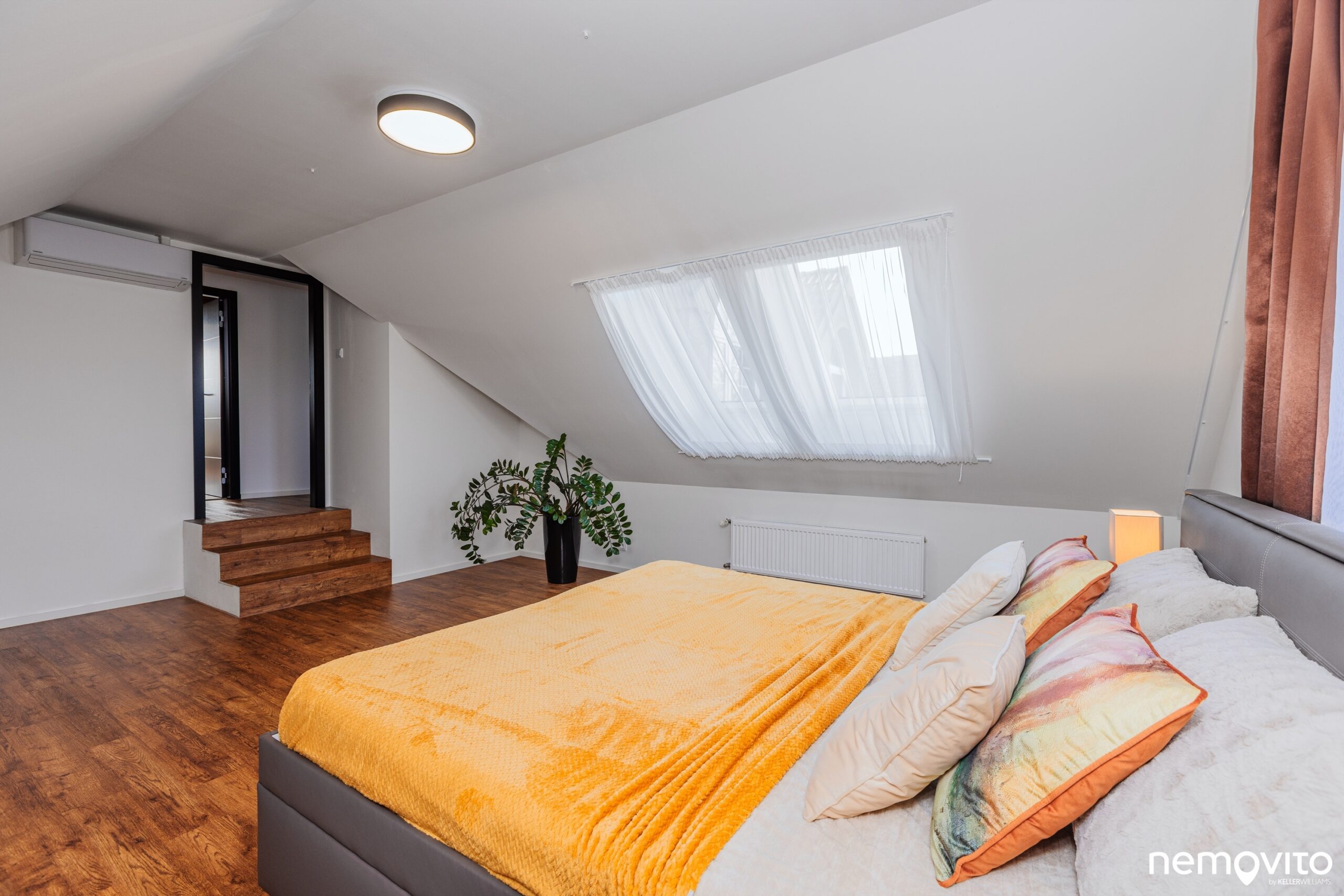 Hlavní ložnice je společně s dalším pokojem propojená přes hlavní koupelnu, která nabízí 11 m2 a denní světlo.