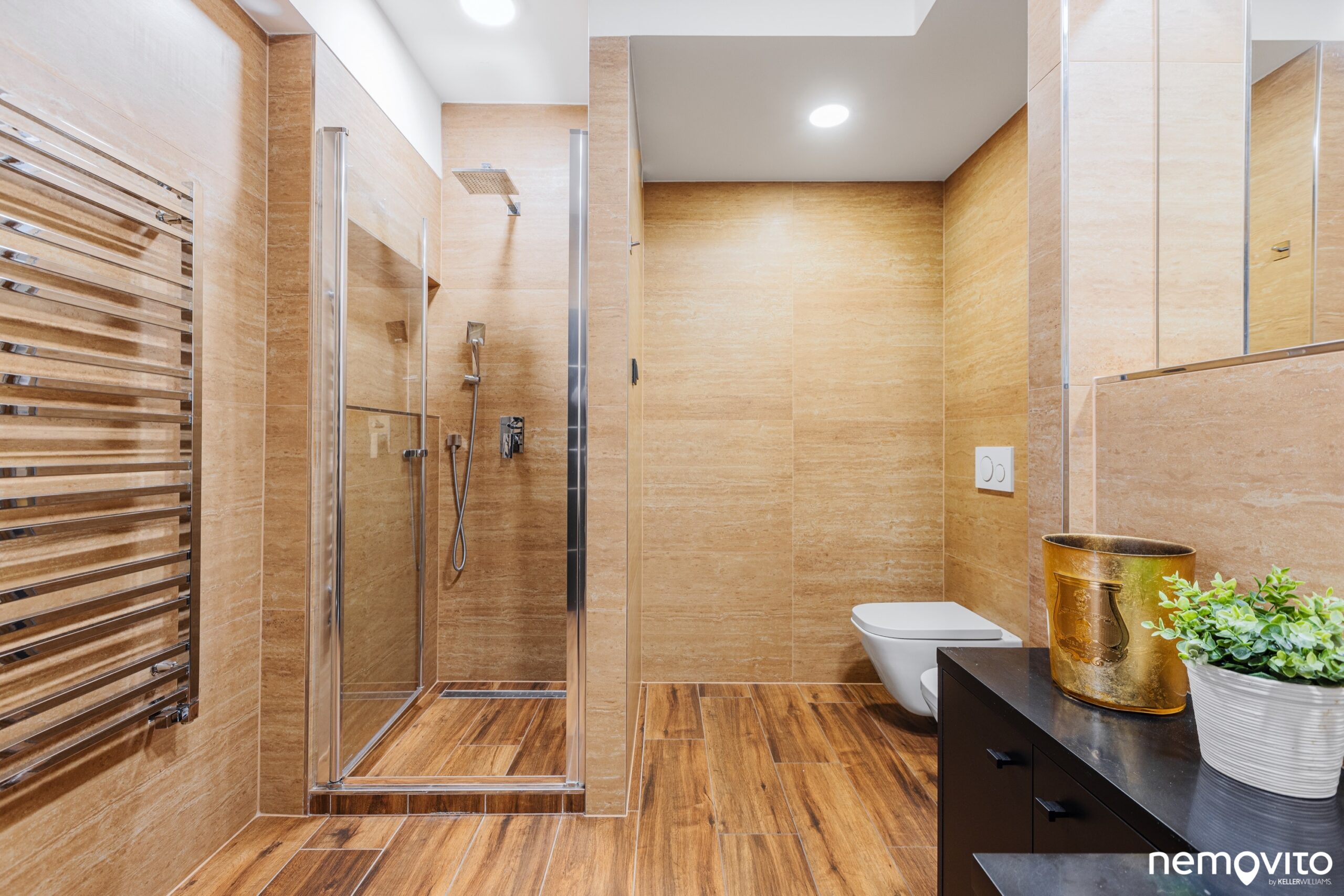 V rámci rekonstrukce interiéru, která v domě proběhla před 5 lety, byly použité praktické vinylové podlahy a velkoformátové obklady. Vše tak, jak má být.