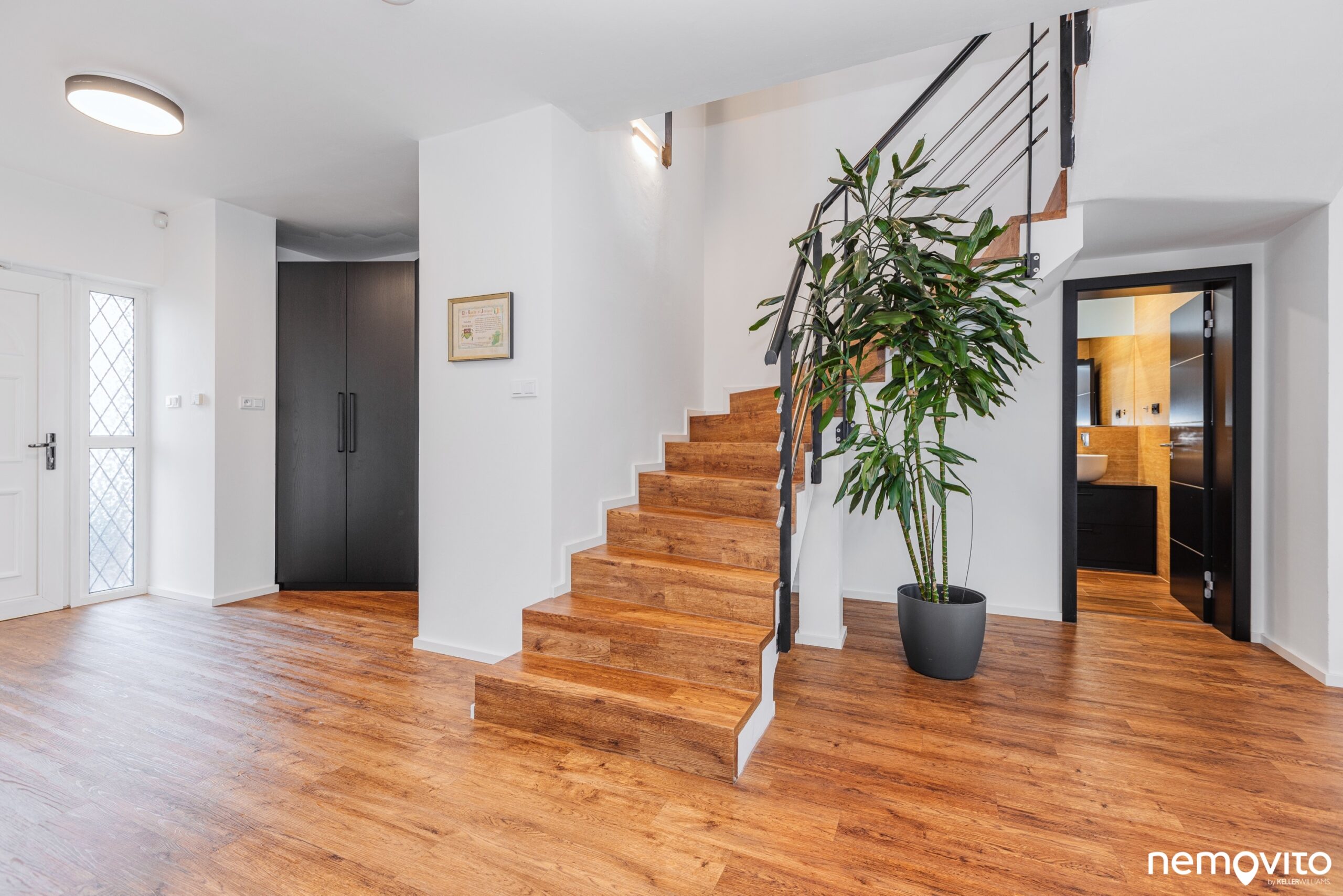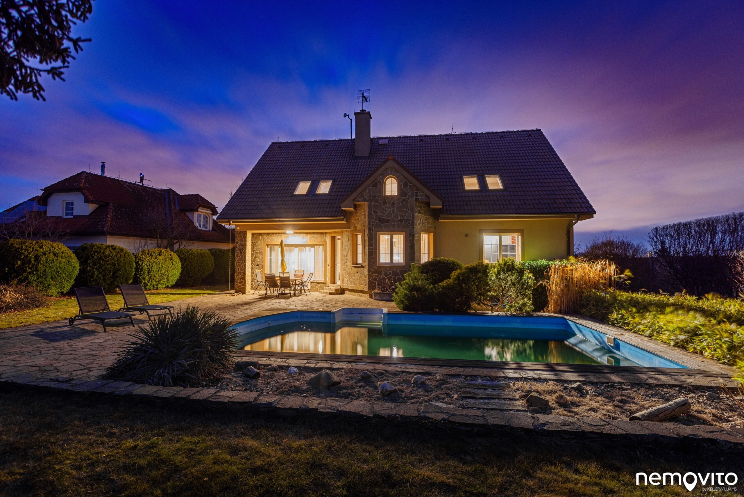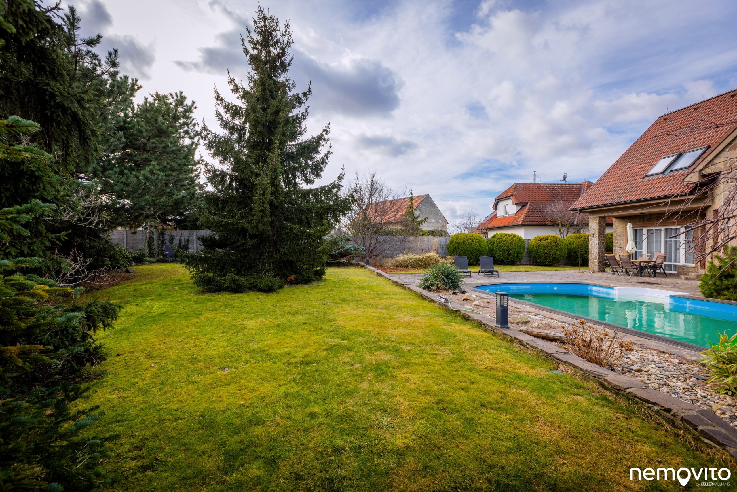 Další dům ze začátku milénia (2002), kterých jste za poslední dobu viděli už spousty? Tak to by byla chyba lávky. Tento dům z roku 2002, který prošel v roce 2019 kompletní rekonstrukcí interiéru do soudobého standardu, v sobě totiž spojuje to nejlepší ze světa tehdejších staveb a dnešního komfortu. Na první pohled sice vypadá bytelně, ale tipovali byste mu 300 m2? Pravděpodobně ne. A takových překvapení na vás čeká ještě celá řada. Jestliže nejste milovníci exhibicionismu a na místo toho oceníte soukromí, pak jste dost možná našli váš nový dům. Na kraji, s jediným sousedem, se vzrostlou zahradou a v okrajové části Průhonic, která je doslova co by kamenem dohodil od hranice hlavního města. Vítejte doma.