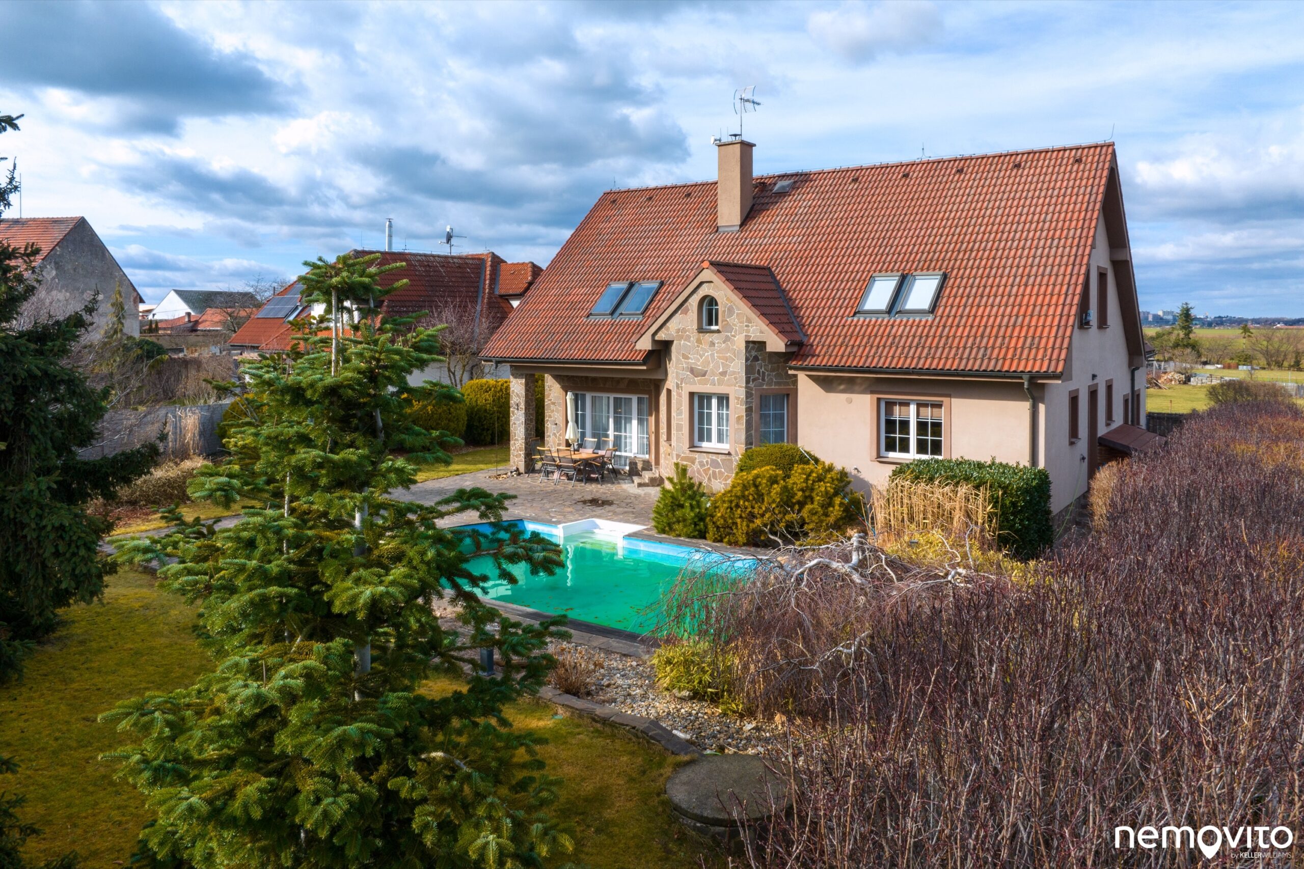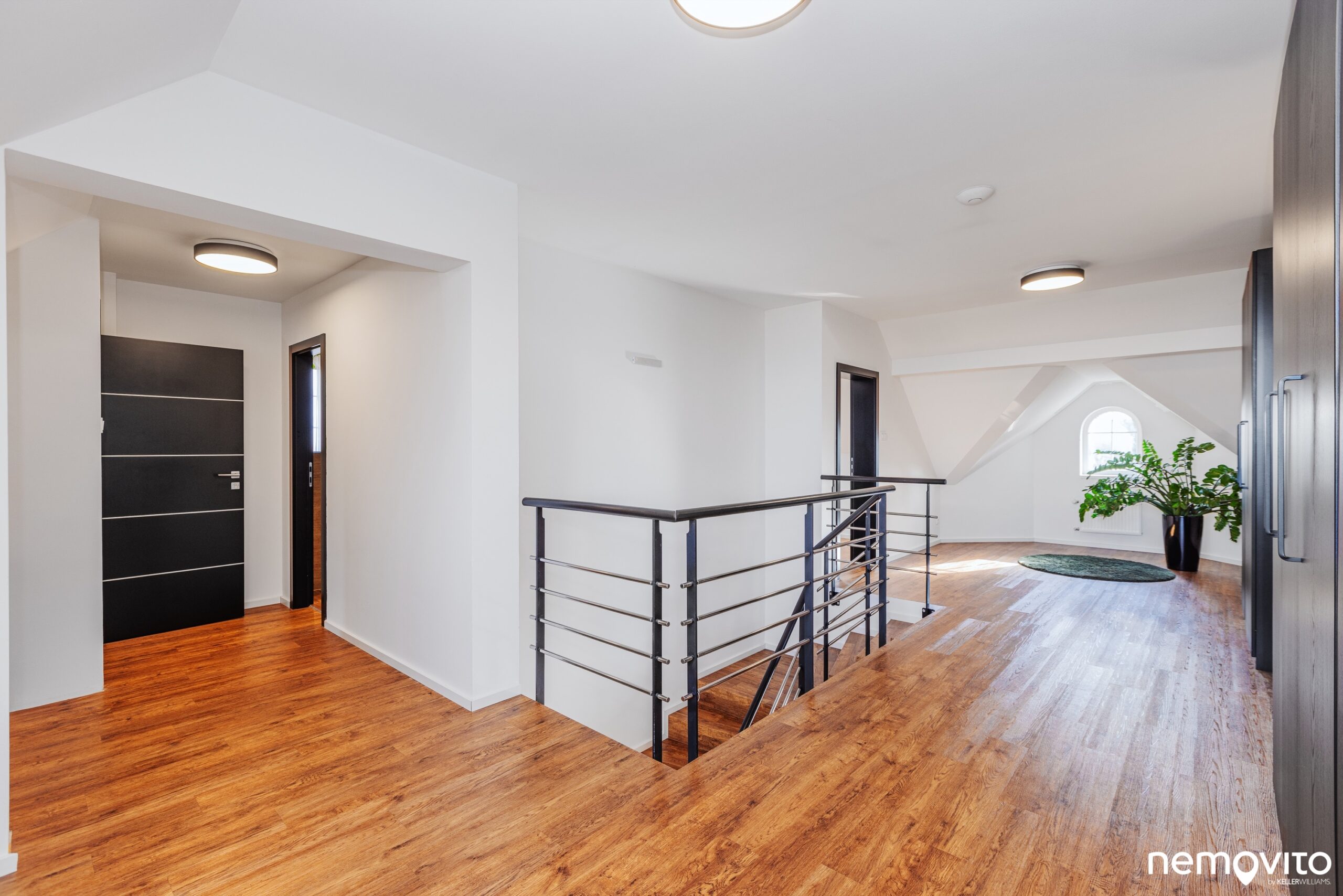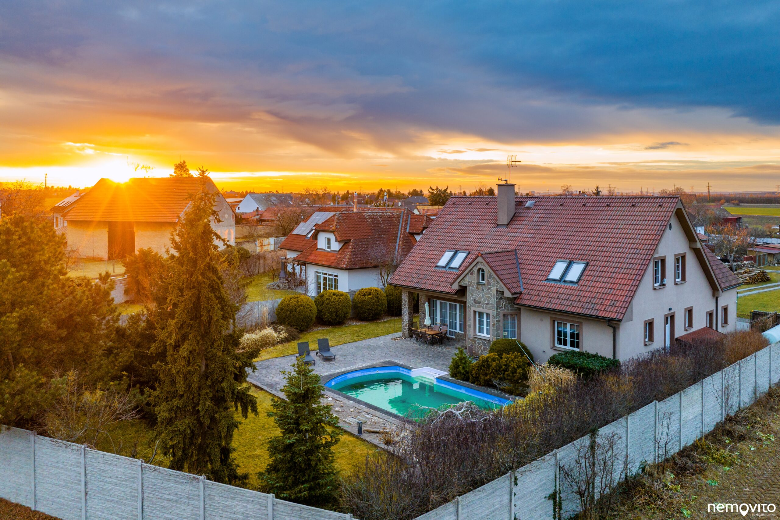 Další dům ze začátku milénia (2002), kterých jste za poslední dobu viděli už spousty? Tak to by byla chyba lávky. Tento dům z roku 2002, který prošel v roce 2019 kompletní rekonstrukcí interiéru do soudobého standardu, v sobě totiž spojuje to nejlepší ze světa tehdejších staveb a dnešního komfortu. Na první pohled sice vypadá bytelně, ale tipovali byste mu 300 m2? Pravděpodobně ne. A takových překvapení na vás čeká ještě celá řada. Jestliže nejste milovníci exhibicionismu a na místo toho oceníte soukromí, pak jste dost možná našli váš nový dům. Na kraji, s jediným sousedem, se vzrostlou zahradou a v okrajové části Průhonic, která je doslova co by kamenem dohodil od hranice hlavního města. Vítejte doma.