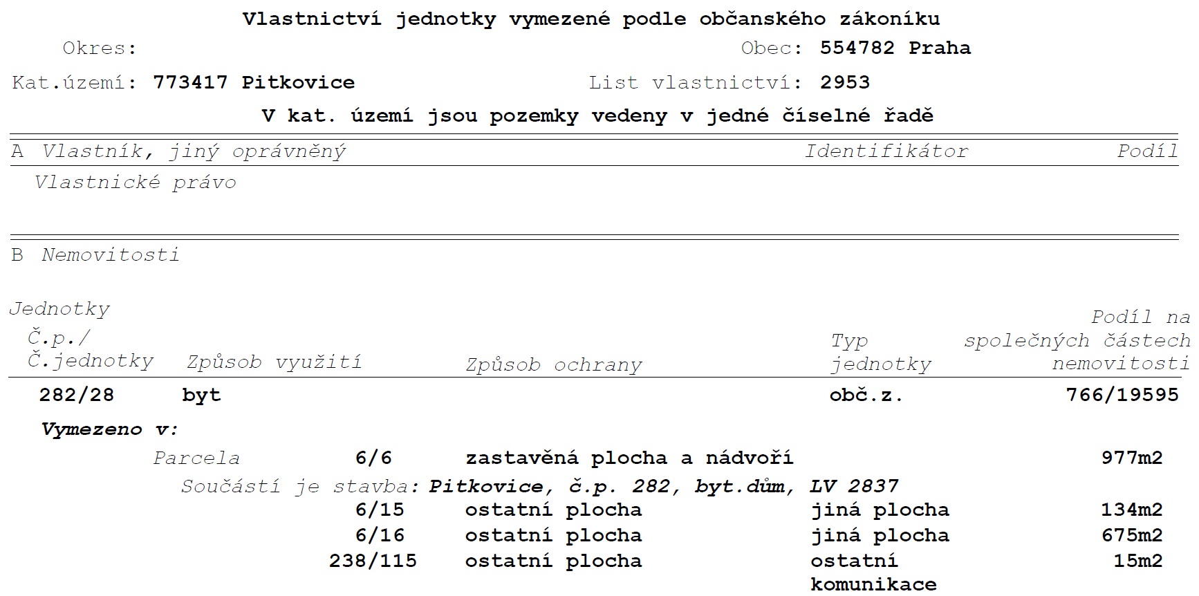 Vymezení dle prohlášení vlastníka