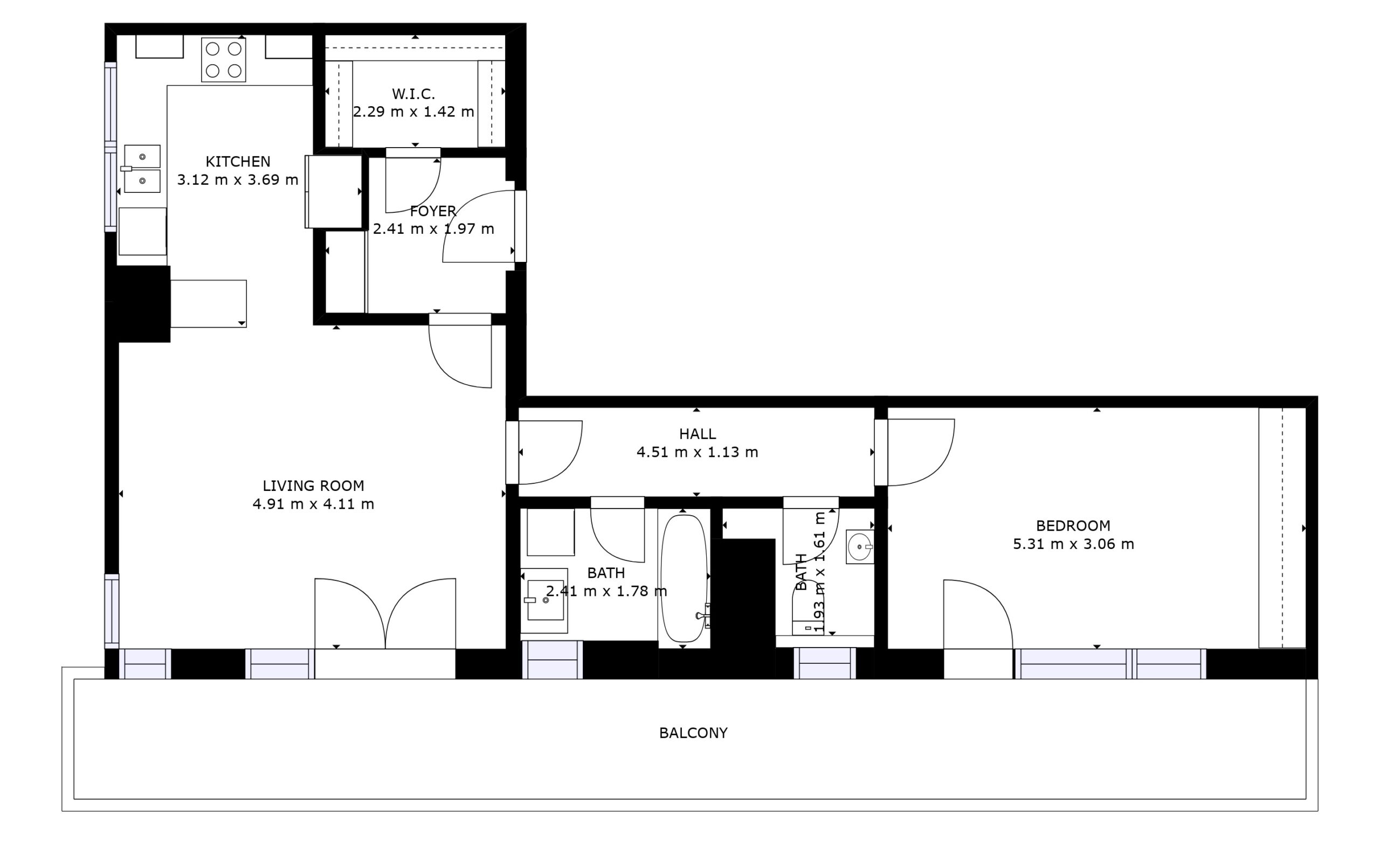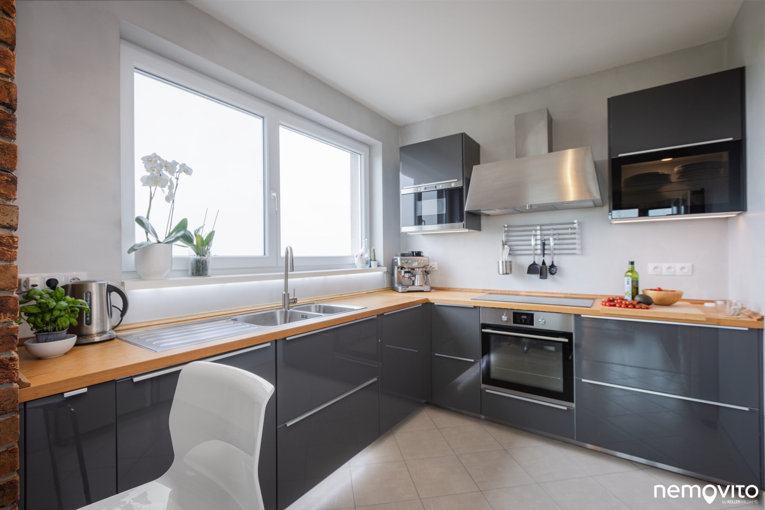 Ráj vášnivého kuchaře. Opravdu prostorná a kvalitní kuchyňská linka, kterou v dvoupokojovém bytě často neuvidíte. Díky velkému oknu si tady vaření budete skutečně užívat. Ve dvou můžete posedět na skleničku u barového pultu.