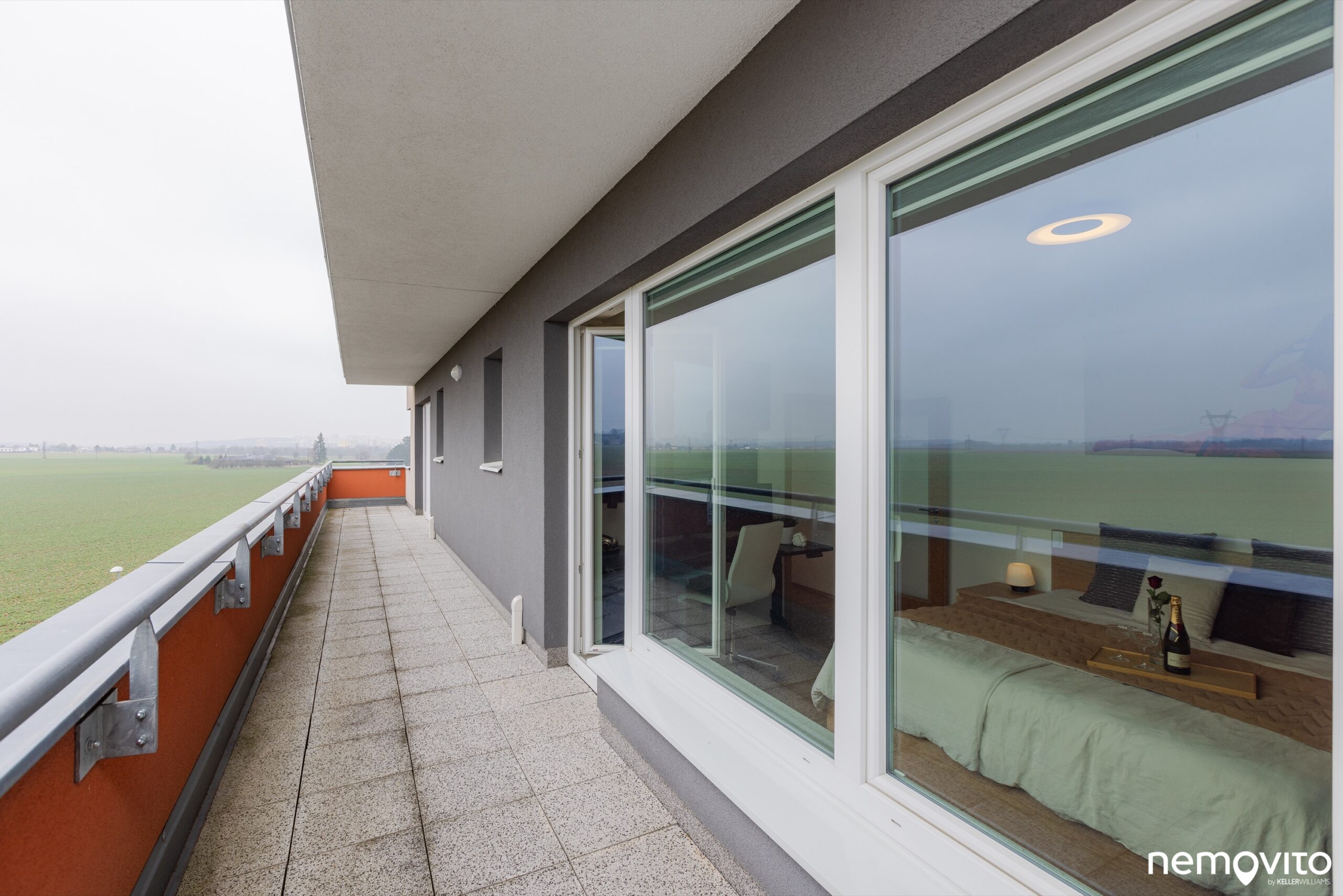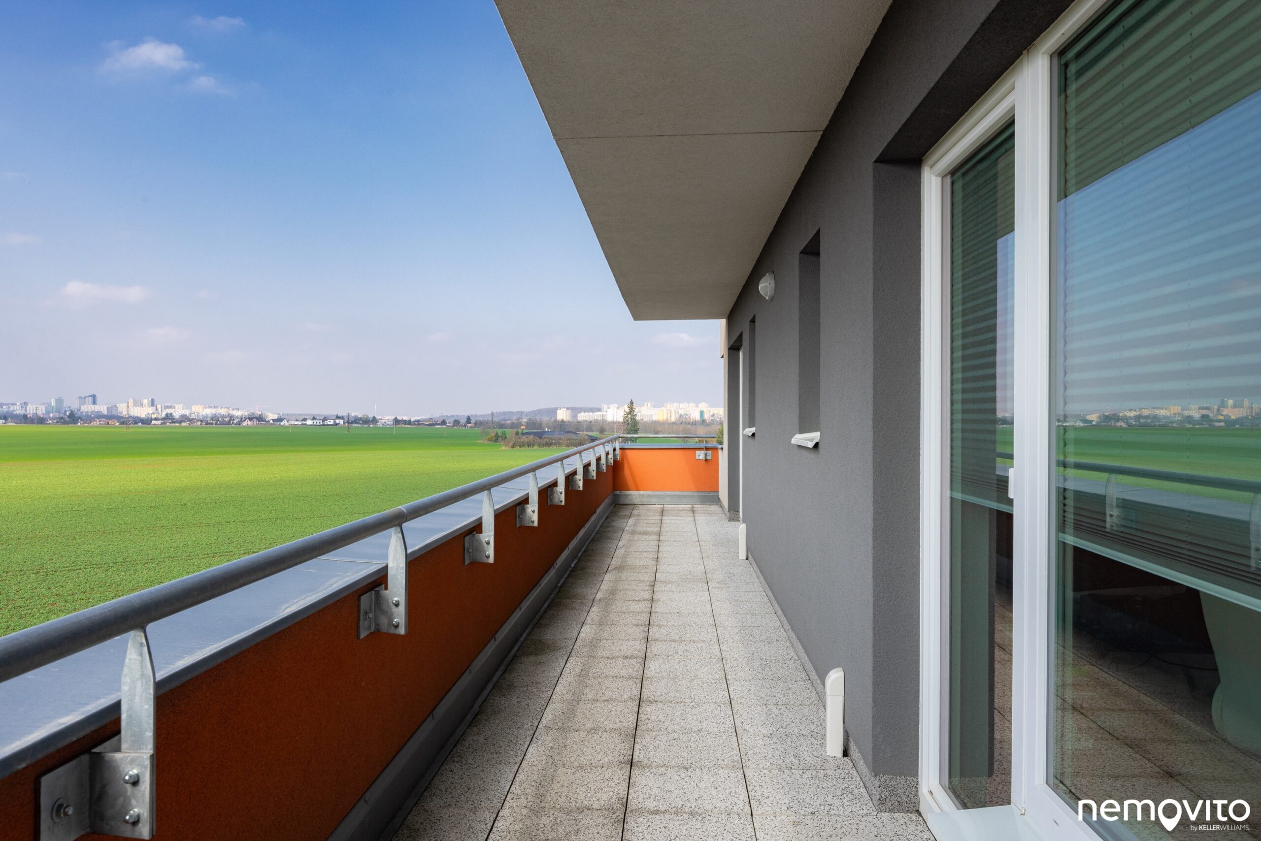 Pokud nechcete být věčně zavření mezi pár zdmi, pak je tohle opravdový klenot. Dlouhá terasa, jejíž plocha je 24 m2, je orientovaná na jihozápadní stranu. Tedy ta nejslunnější orientace, která ve spojitosti s volným výhledem nabízí opravdovou letní parádu.