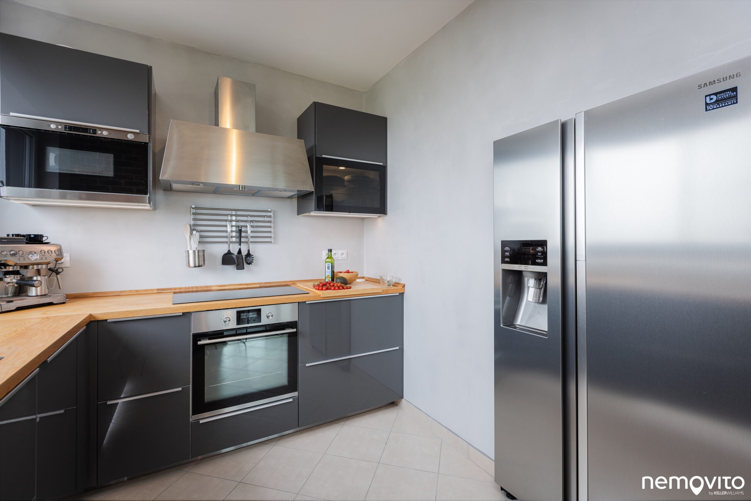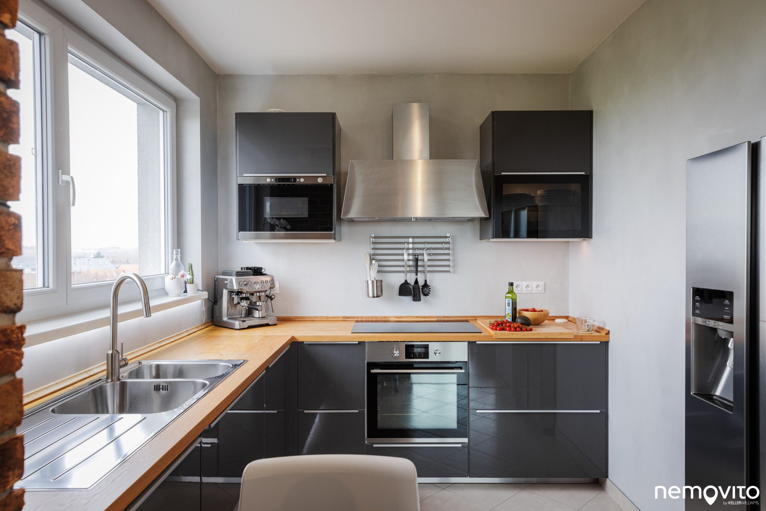 Těšit se můžete na veškeré potřebné vestavěné spotřebiče. Jasně, klasika. Ale co taková americká lednice, která je zabudovaná ve stěně? Skvělý detail, díky kterému získáváte místo jak na vaření, tak na potraviny. Už žádné mačkání v maličké lednici, která zabírá místo v lince.